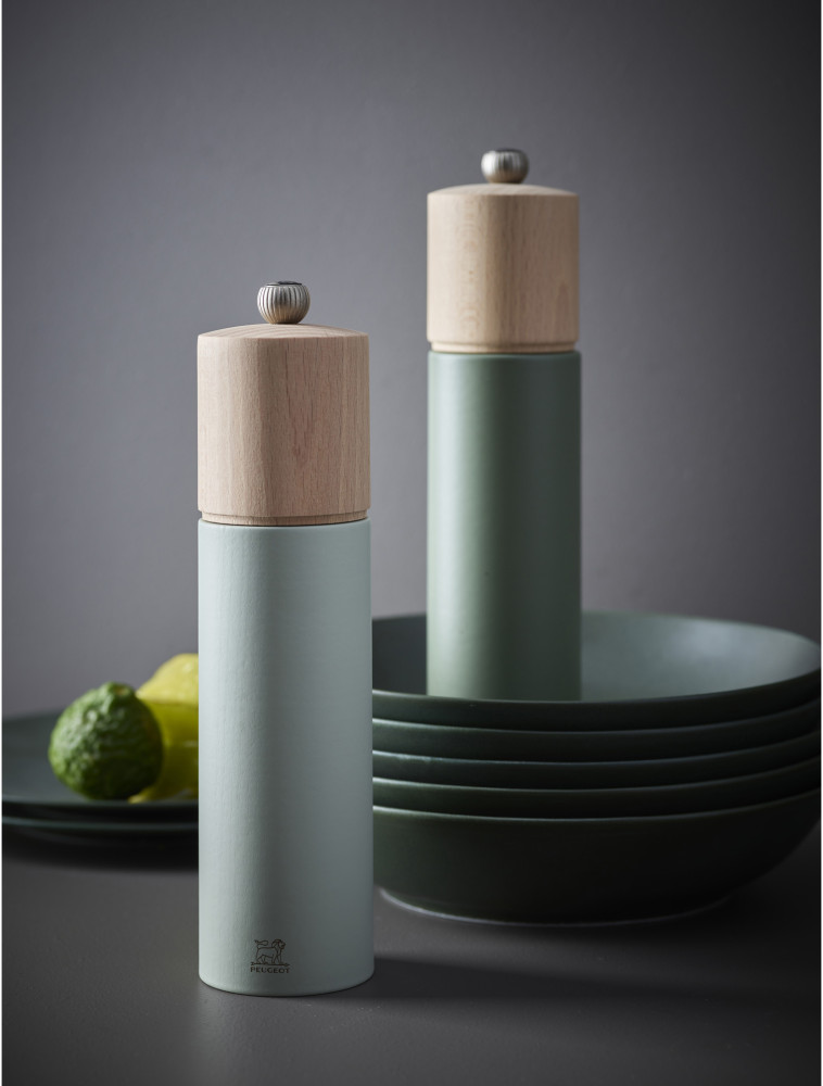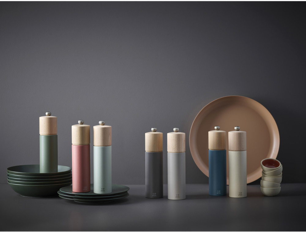 Kolekcja manualnych młynków BOREAL marki Peugeot łączy design i precyzję z pięknem pastelowych kolorów i naturalnym usłojeniem drewna bukowego. Dzięki temu połączeniu producent nawiązuje do świata well-being, w którym harmonia i delikatność pobudzają nasze zmysły. Młynki do soli i pieprzu można dowolnie komponować w ramach dostępnych wariantów kolorystycznych, tworząc zestawy.