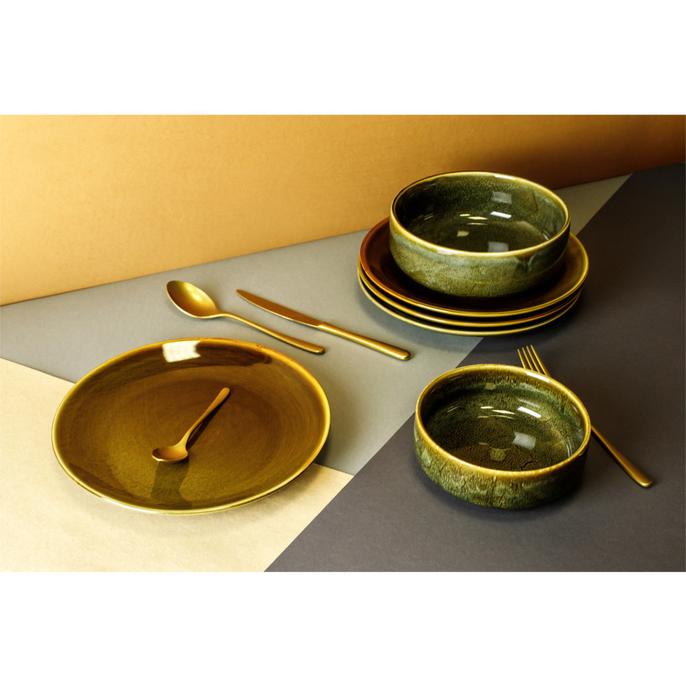 CANE – stonowany, piękny odcień zieleni, przypomina nam o połączeniu i bliskości z naturą. Mocna porcelana, proste, klasyczne okrągłe kształty w połączeniu z modnym lnianym obrusem, bądź naturalnym blatem stołu, doskonale uzupełni aranżację Twojej jadalni, czy restauracji. Wyjątkowy kolor, przechodzenie barw w różne tonacje i wzory, to zaleta i piękno tej kolekcji. Dzięki zastosowaniu do produkcji porcelany naturalnego popiołu trzcinowego, możesz cieszyć się wyjątkowym designem zastawy stołowej i podążać za aktualnymi trendami wyposażenia wnętrz.