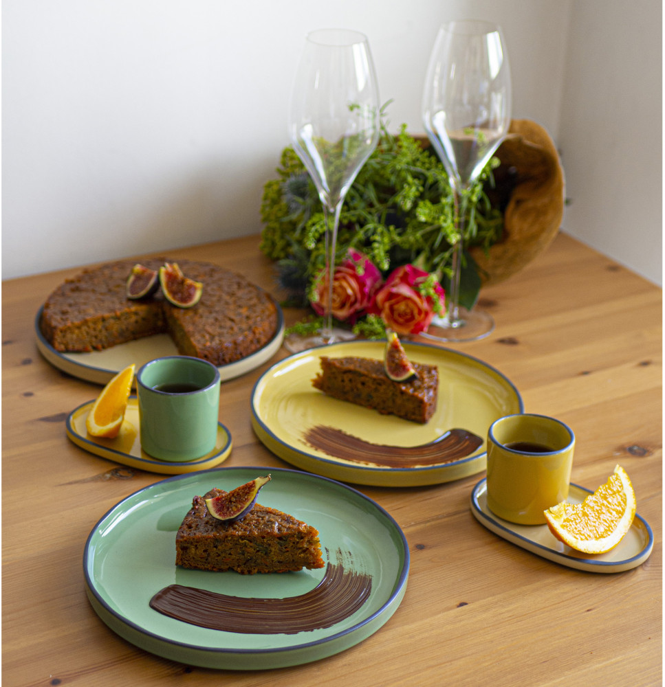 Porcelana CARACTERE stworzona ze specjalnie wyselekcjonowanej czarnej gliny, szkliwionej w jednej z siedmiu barw, ręcznie wykończonej tak aby uzyskać unikalnie kształtowany dla każdego egzemplarza - czarny rant. Elementy porcelany dostępne są w siedmiu kolorach inspirowanych przyprawami, mogą być dowolnie zestawiane utrzymując spójną tonację. Ponadto nadają się do sztaplowania, zaś płaskie dna gwarantują utrzymanie temperatury potraw.