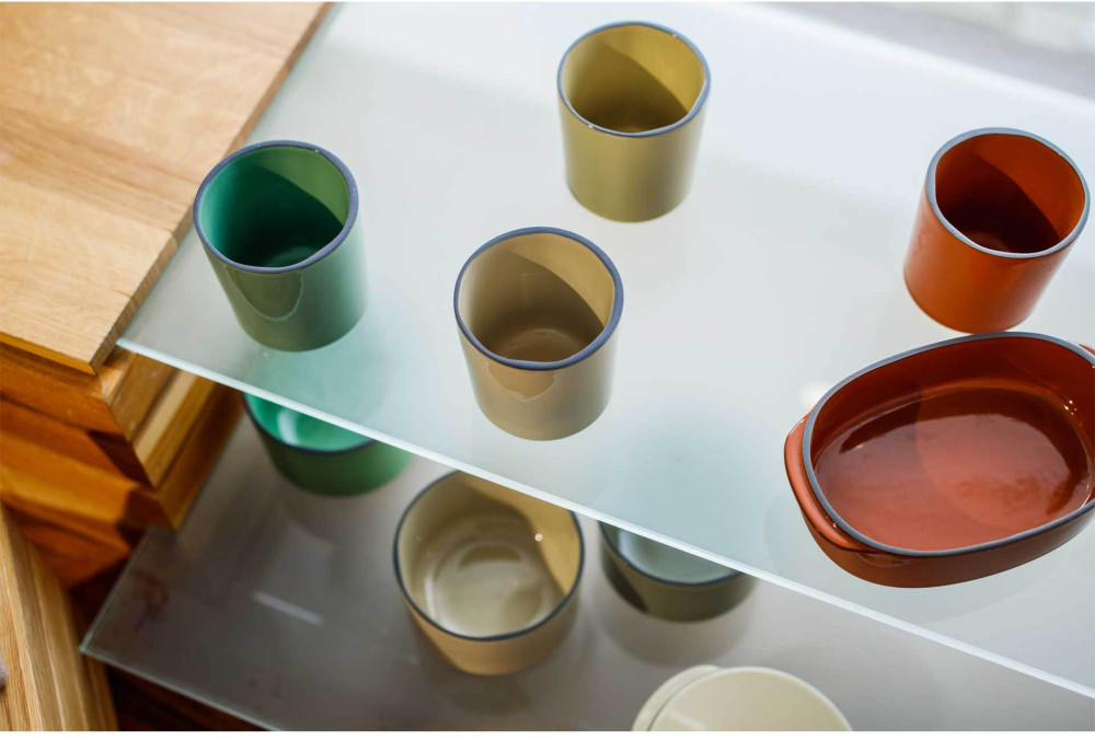 Porcelana CARACTERE stworzona ze specjalnie wyselekcjonowanej czarnej gliny, szkliwionej w jednej z siedmiu barw, ręcznie wykończonej tak aby uzyskać unikalnie kształtowany dla każdego egzemplarza - czarny rant. Elementy porcelany dostępne są w siedmiu kolorach inspirowanych przyprawami, mogą być dowolnie zestawiane utrzymując spójną tonację. Ponadto nadają się do sztaplowania, zaś płaskie dna gwarantują utrzymanie temperatury potraw.
