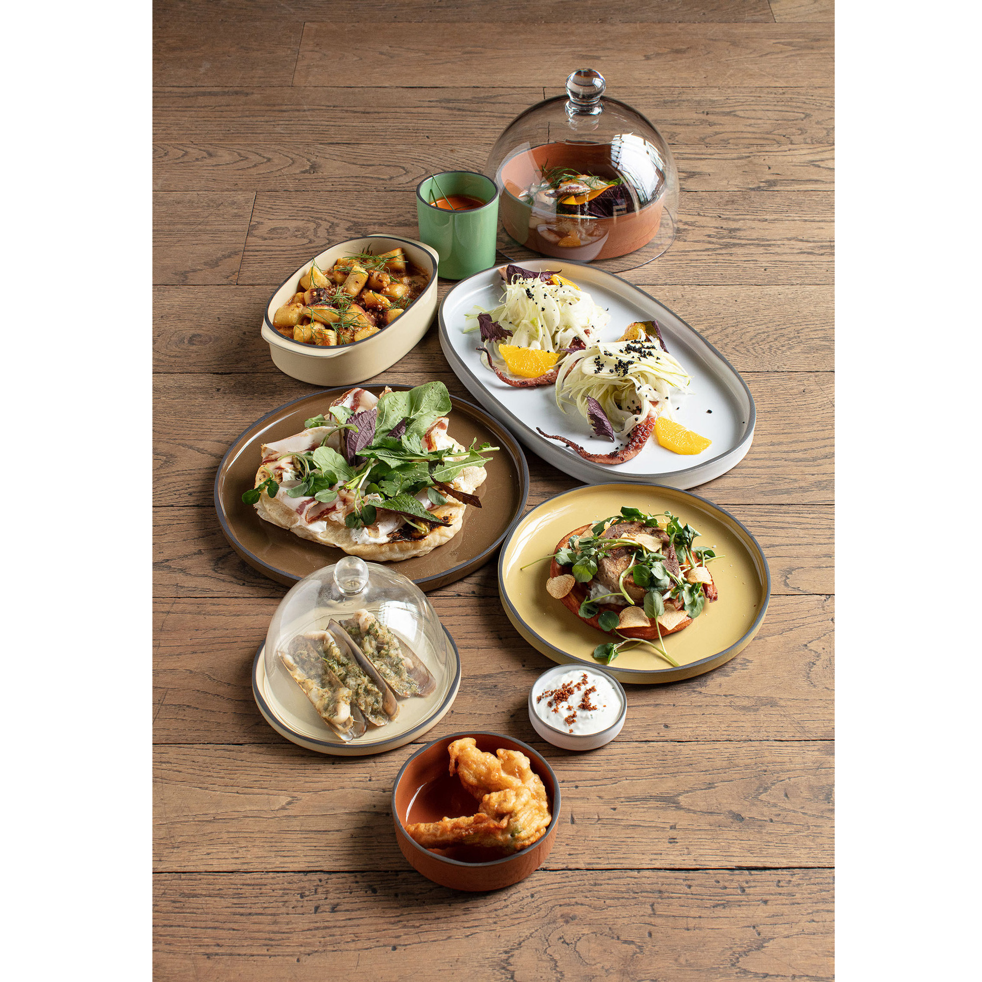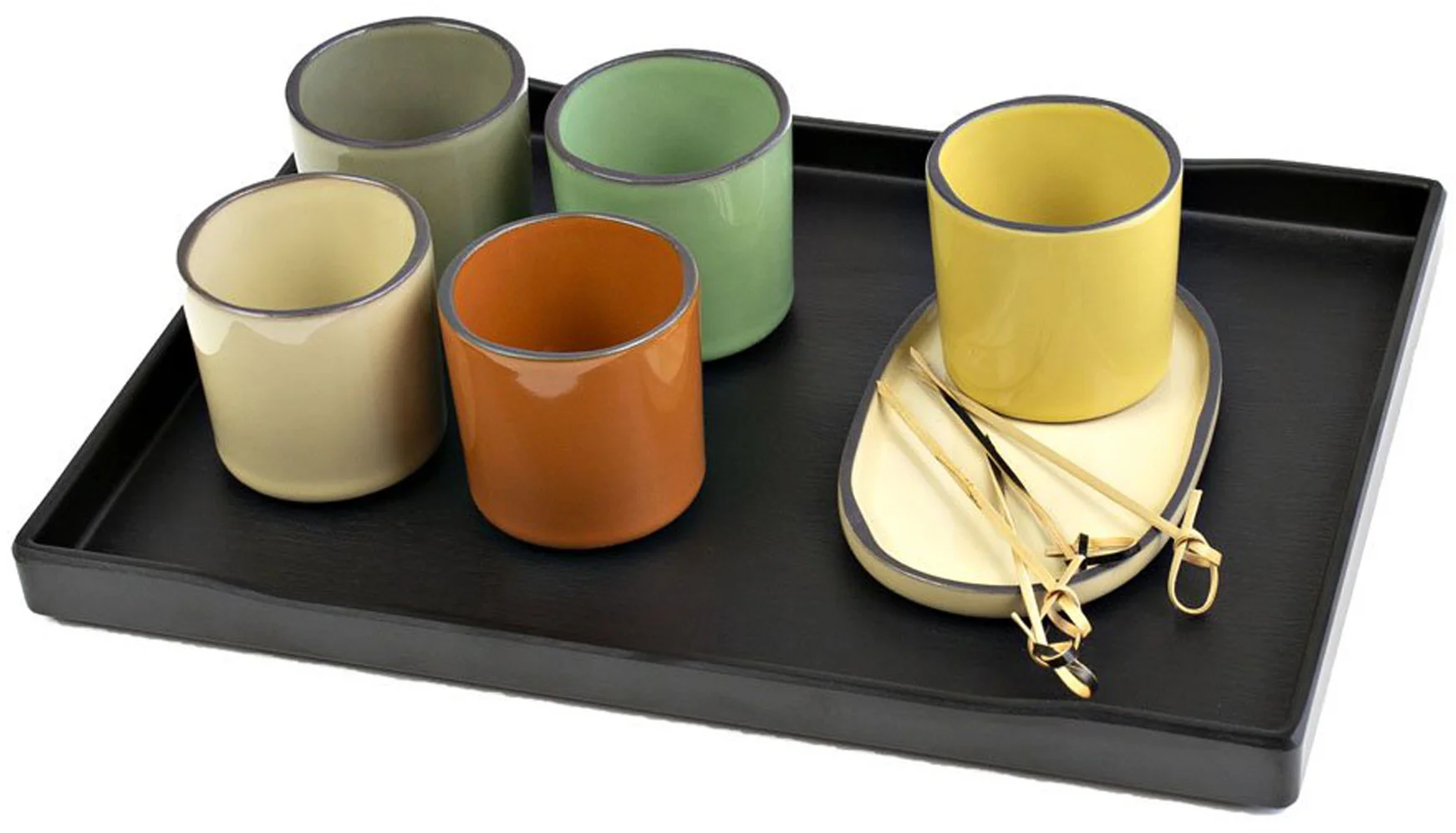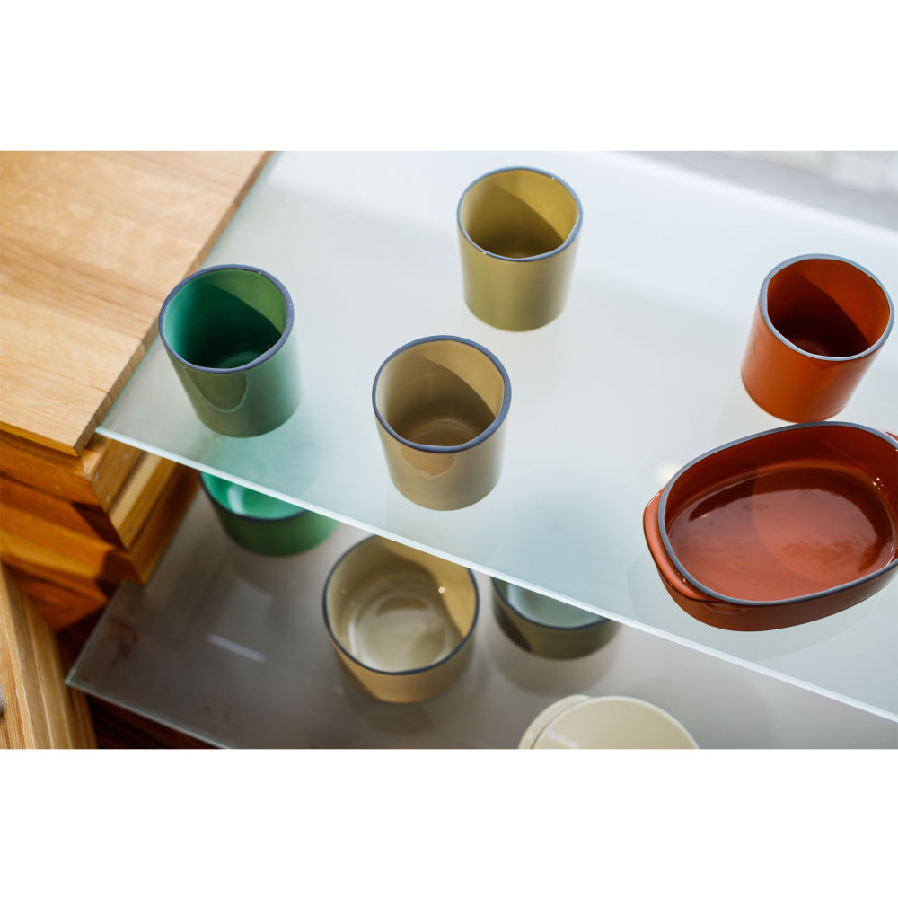 Porcelana CARACTERE stworzona ze specjalnie wyselekcjonowanej czarnej gliny, szkliwionej w jednej z siedmiu barw, ręcznie wykończonej tak aby uzyskać unikalnie kształtowany dla każdego egzemplarza - czarny rant. Elementy porcelany dostępne są w siedmiu kolorach inspirowanych przyprawami, mogą być dowolnie zestawiane utrzymując spójną tonację. Ponadto nadają się do sztaplowania, zaś płaskie dna gwarantują utrzymanie temperatury potraw.