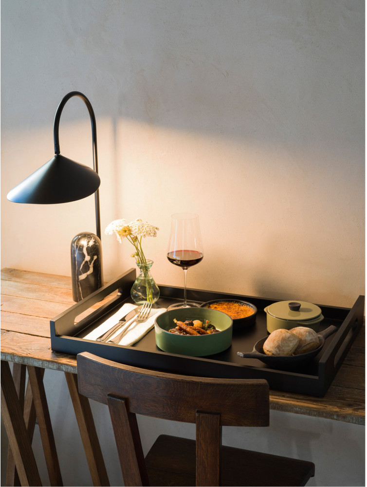 Porcelana CARACTERE stworzona ze specjalnie wyselekcjonowanej czarnej gliny, szkliwionej w jednej z siedmiu barw, ręcznie wykończonej tak aby uzyskać unikalnie kształtowany dla każdego egzemplarza - czarny rant. Elementy porcelany dostępne są w siedmiu kolorach inspirowanych przyprawami, mogą być dowolnie zestawiane utrzymując spójną tonację. Ponadto nadają się do sztaplowania, zaś płaskie dna gwarantują utrzymanie temperatury potraw.