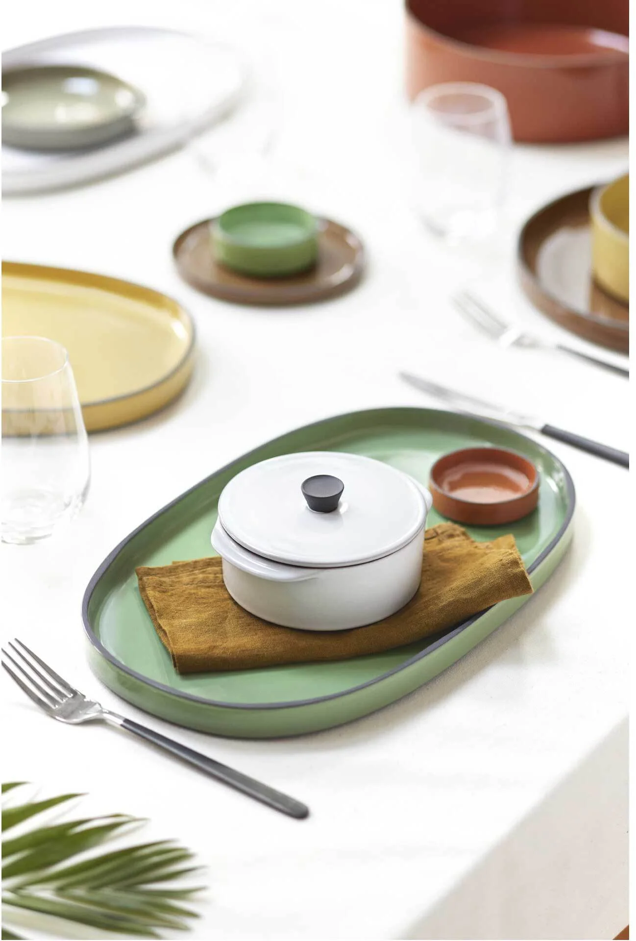 Porcelana CARACTERE stworzona ze specjalnie wyselekcjonowanej czarnej gliny, szkliwionej w jednej z siedmiu barw, ręcznie wykończonej tak aby uzyskać unikalnie kształtowany dla każdego egzemplarza - czarny rant. Elementy porcelany dostępne są w siedmiu kolorach inspirowanych przyprawami, mogą być dowolnie zestawiane utrzymując spójną tonację. Ponadto nadają się do sztaplowania, zaś płaskie dna gwarantują utrzymanie temperatury potraw.