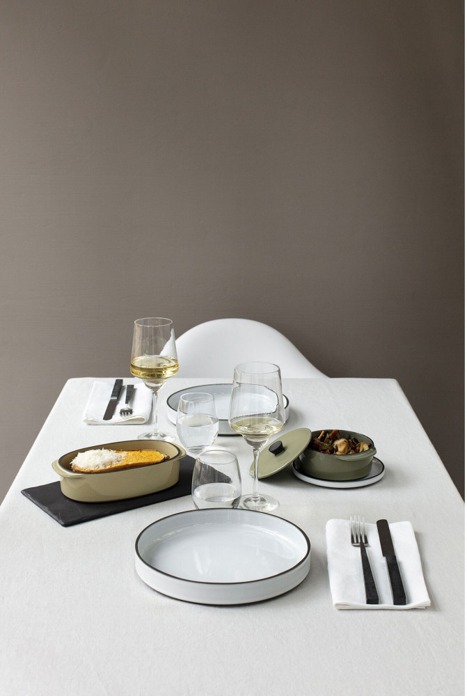 Porcelana CARACTERE stworzona ze specjalnie wyselekcjonowanej czarnej gliny, szkliwionej w jednej z siedmiu barw, ręcznie wykończonej tak aby uzyskać unikalnie kształtowany dla każdego egzemplarza - czarny rant. Elementy porcelany dostępne są w siedmiu kolorach inspirowanych przyprawami, mogą być dowolnie zestawiane utrzymując spójną tonację. Ponadto nadają się do sztaplowania, zaś płaskie dna gwarantują utrzymanie temperatury potraw.