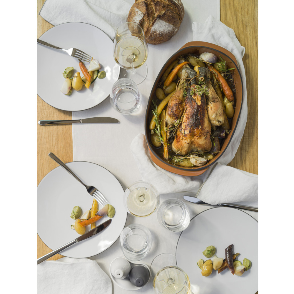 Porcelana CARACTERE stworzona ze specjalnie wyselekcjonowanej czarnej gliny, szkliwionej w jednej z siedmiu barw, ręcznie wykończonej tak aby uzyskać unikalnie kształtowany dla każdego egzemplarza - czarny rant. Elementy porcelany dostępne są w siedmiu kolorach inspirowanych przyprawami, mogą być dowolnie zestawiane utrzymując spójną tonację. Ponadto nadają się do sztaplowania, zaś płaskie dna gwarantują utrzymanie temperatury potraw.