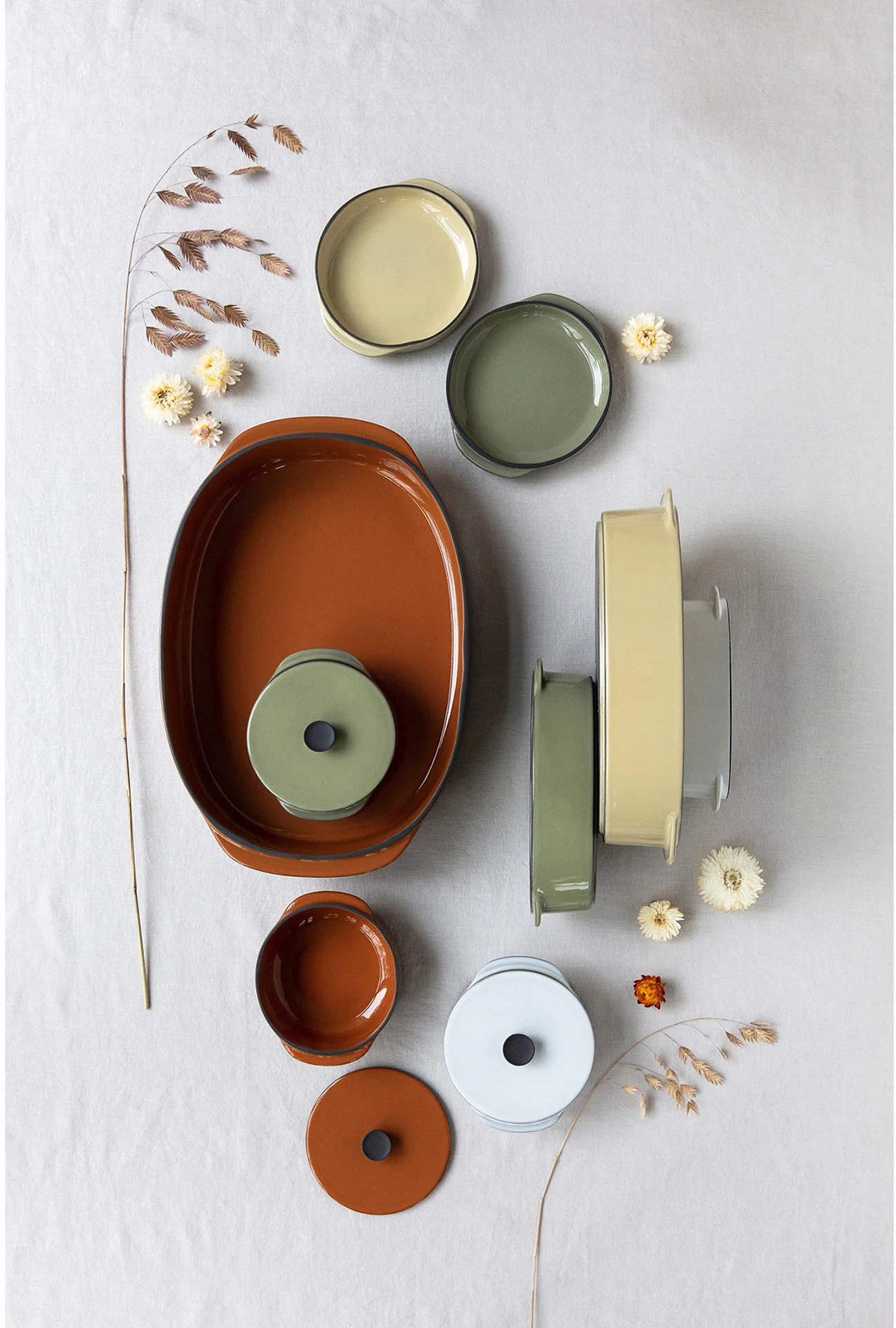 Porcelana CARACTERE stworzona ze specjalnie wyselekcjonowanej czarnej gliny, szkliwionej w jednej z siedmiu barw, ręcznie wykończonej tak aby uzyskać unikalnie kształtowany dla każdego egzemplarza - czarny rant. Elementy porcelany dostępne są w siedmiu kolorach inspirowanych przyprawami, mogą być dowolnie zestawiane utrzymując spójną tonację. Ponadto nadają się do sztaplowania, zaś płaskie dna gwarantują utrzymanie temperatury potraw.