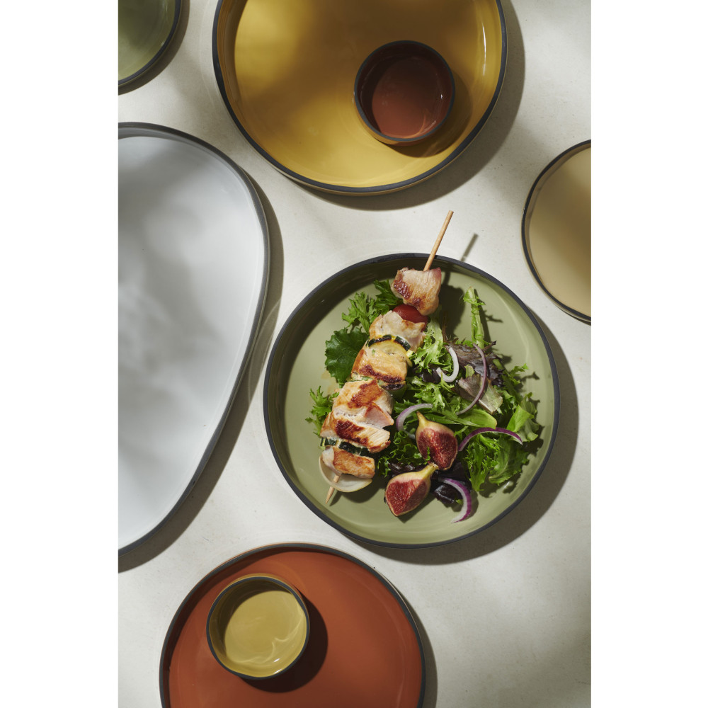 Talerze linii Caractere dodadzą stylu i koloru do każdego stołu. Porcelana stworzona ze specjalnie wyselekcjonowanej czarnej gliny, szkliwionej w jednej z siedmiu barw, ręcznie wykończonej tak aby uzyskać unikalnie kształtowany dla każdego egzemplarza - czarny rant. Elementy porcelany dostępne są w siedmiu kolorach inspirowanych przyprawami, mogą być dowolnie zestawiane utrzymując spójną tonację. Ponadto nadają się do sztaplowania, zaś płaskie dna gwarantują utrzymanie temperatury potraw.