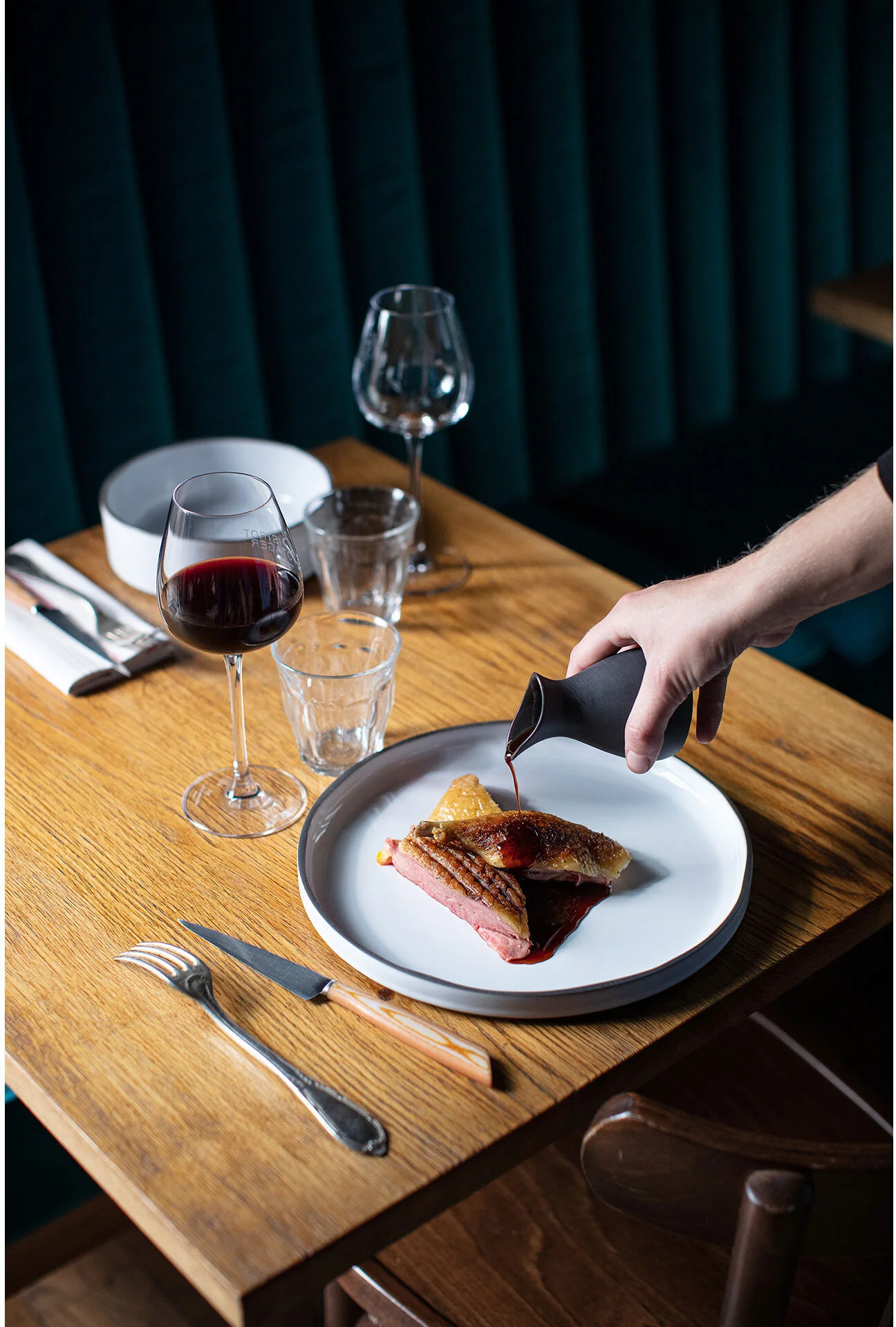 Talerze linii Caractere dodadzą stylu i koloru do każdego stołu. Porcelana stworzona ze specjalnie wyselekcjonowanej czarnej gliny, szkliwionej w jednej z siedmiu barw, ręcznie wykończonej tak aby uzyskać unikalnie kształtowany dla każdego egzemplarza - czarny rant. Elementy porcelany dostępne są w siedmiu kolorach inspirowanych przyprawami, mogą być dowolnie zestawiane utrzymując spójną tonację. Ponadto nadają się do sztaplowania, zaś płaskie dna gwarantują utrzymanie temperatury potraw.