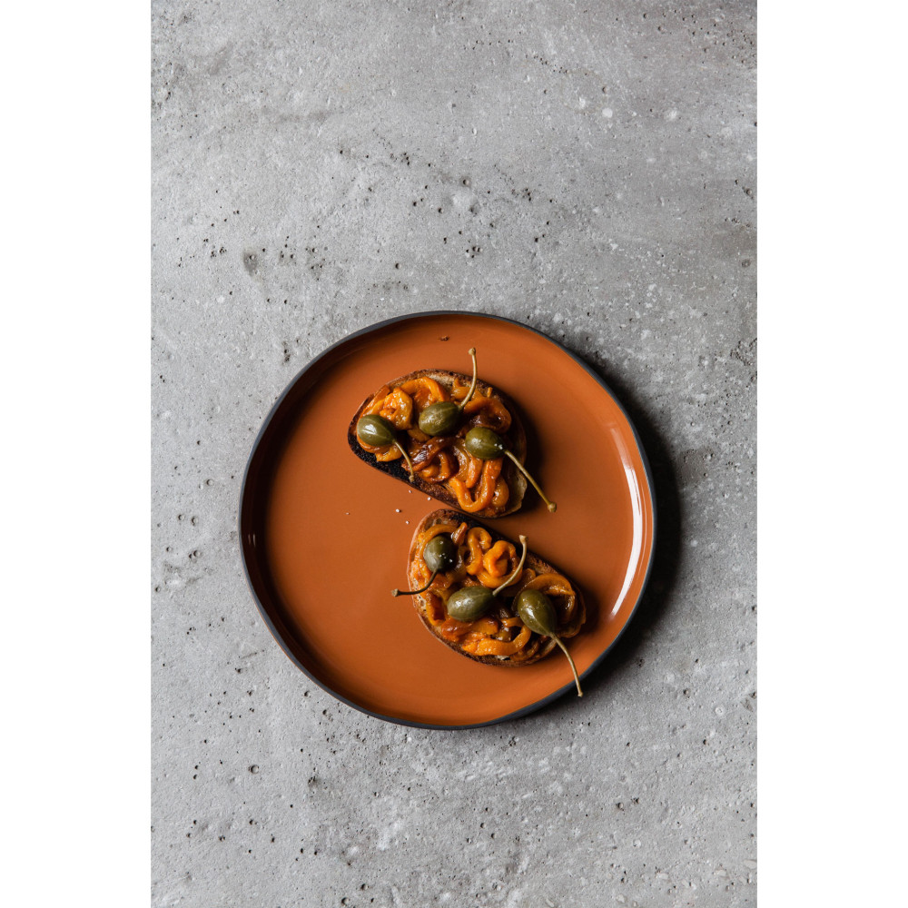Talerze linii Caractere dodadzą stylu i koloru do każdego stołu. Porcelana stworzona ze specjalnie wyselekcjonowanej czarnej gliny, szkliwionej w jednej z siedmiu barw, ręcznie wykończonej tak aby uzyskać unikalnie kształtowany dla każdego egzemplarza - czarny rant. Elementy porcelany dostępne są w siedmiu kolorach inspirowanych przyprawami, mogą być dowolnie zestawiane utrzymując spójną tonację. Ponadto nadają się do sztaplowania, zaś płaskie dna gwarantują utrzymanie temperatury potraw.