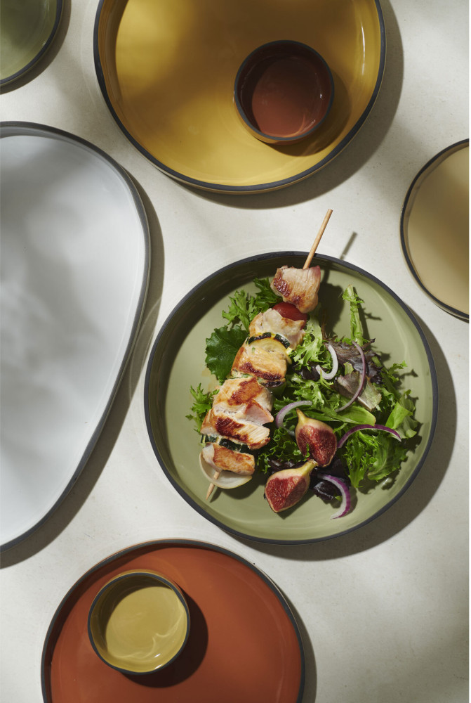 Talerze linii Caractere dodadzą stylu i koloru do każdego stołu. Porcelana stworzona ze specjalnie wyselekcjonowanej czarnej gliny, szkliwionej w jednej z siedmiu barw, ręcznie wykończonej tak aby uzyskać unikalnie kształtowany dla każdego egzemplarza - czarny rant. Elementy porcelany dostępne są w siedmiu kolorach inspirowanych przyprawami, mogą być dowolnie zestawiane utrzymując spójną tonację. Ponadto nadają się do sztaplowania, zaś płaskie dna gwarantują utrzymanie temperatury potraw.