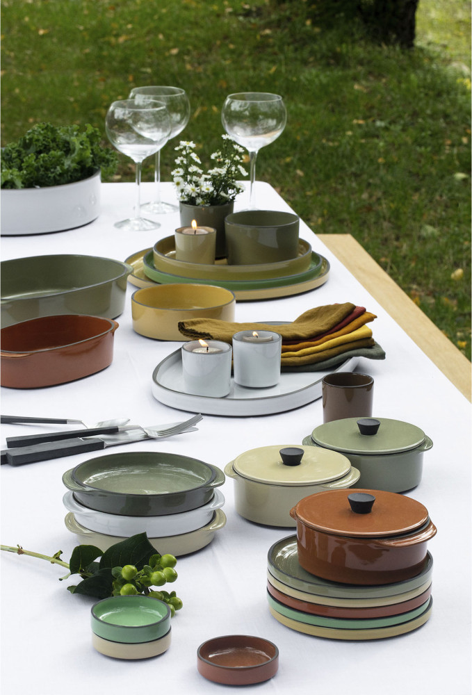 Porcelana CARACTERE stworzona ze specjalnie wyselekcjonowanej czarnej gliny, szkliwionej w jednej z siedmiu barw, ręcznie wykończonej tak aby uzyskać unikalnie kształtowany dla każdego egzemplarza - czarny rant. Elementy porcelany dostępne są w siedmiu kolorach inspirowanych przyprawami, mogą być dowolnie zestawiane utrzymując spójną tonację. Ponadto nadają się do sztaplowania, zaś płaskie dna gwarantują utrzymanie temperatury potraw.