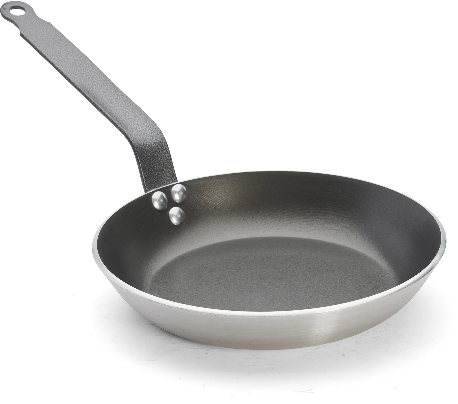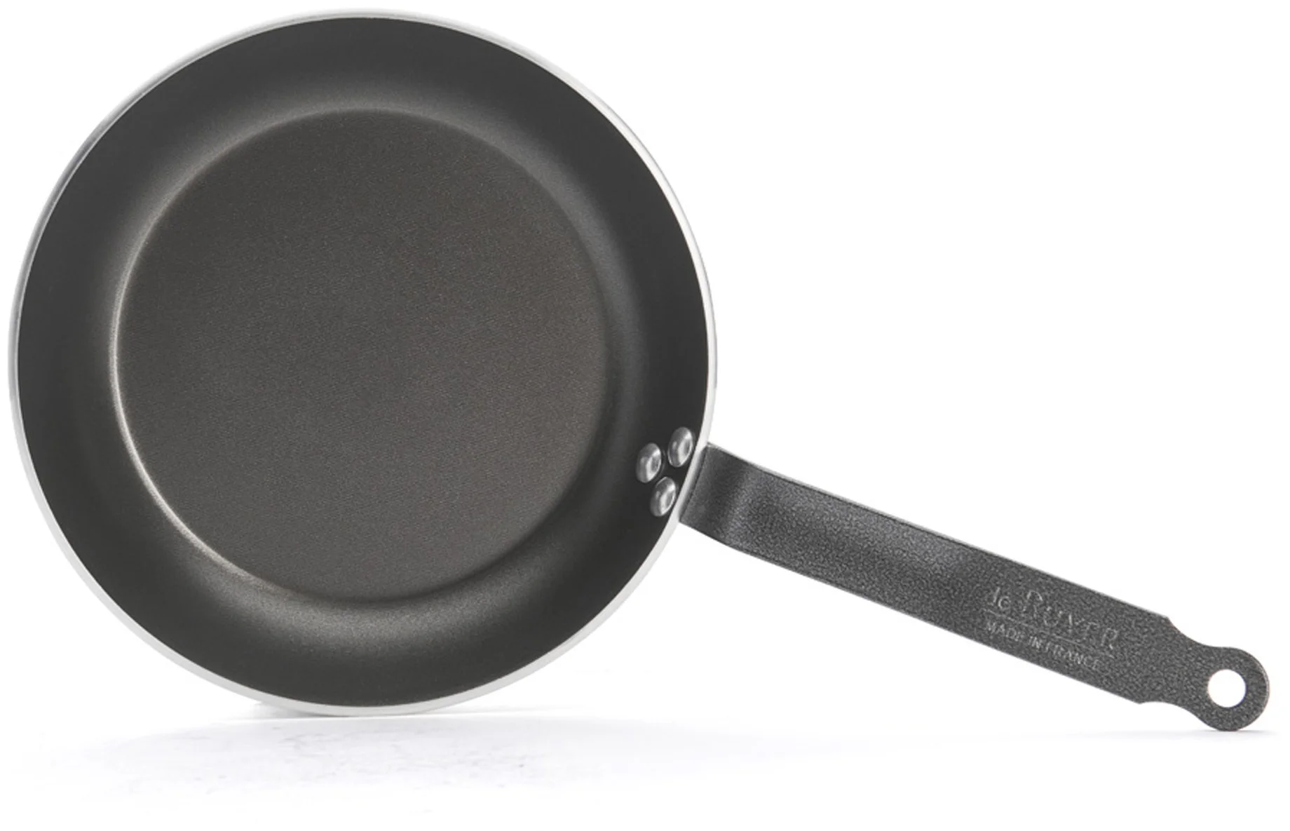Stalowy nitowany uchwyt we francuskim stylu pokryty żywicą epoksydową jest niezwykle odporny na wysokie temperatury, dzięki czemu patelnia wraz z potrawą może być zapiekana w piekarniku.
