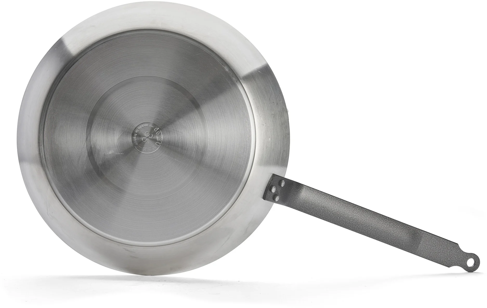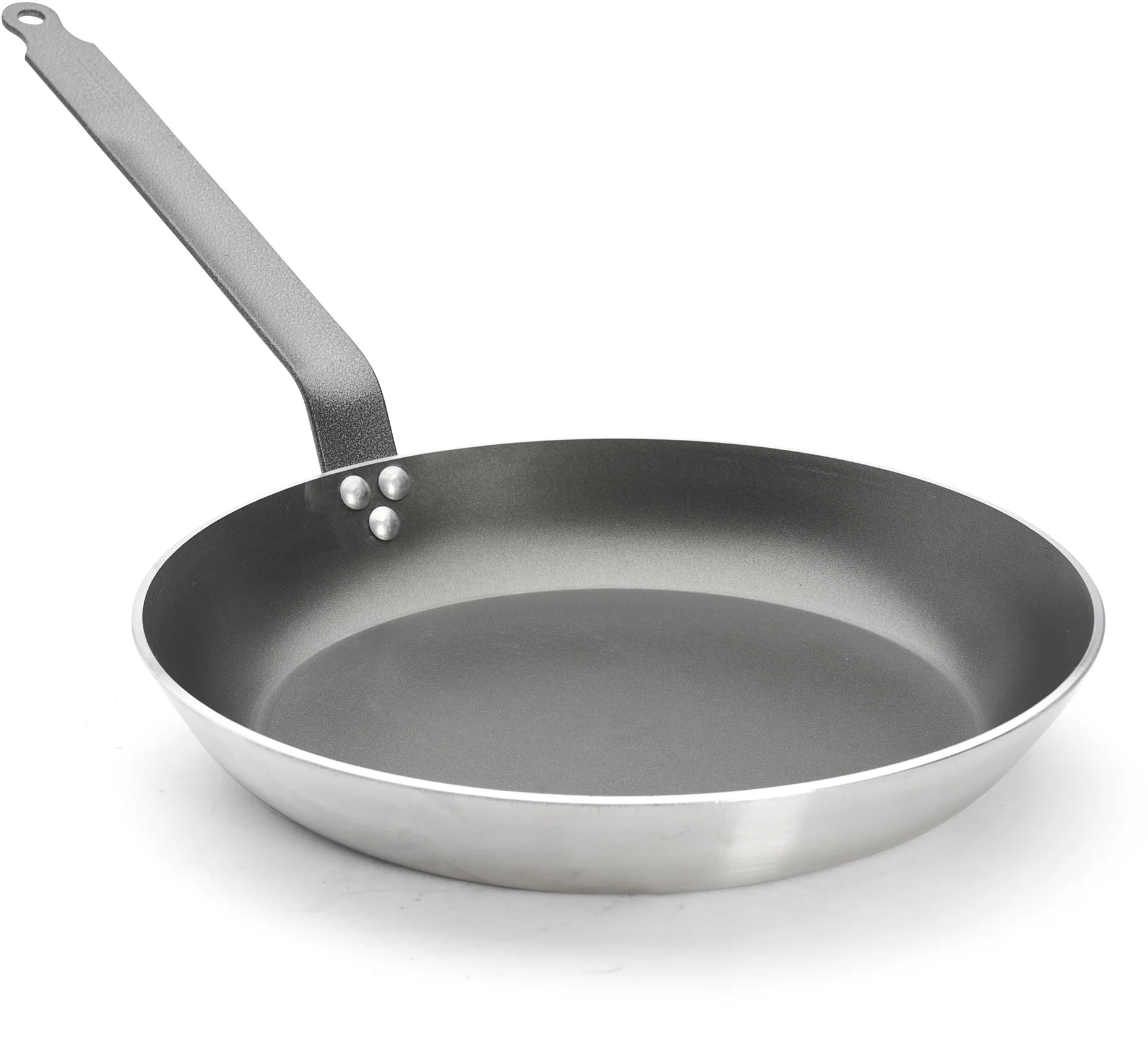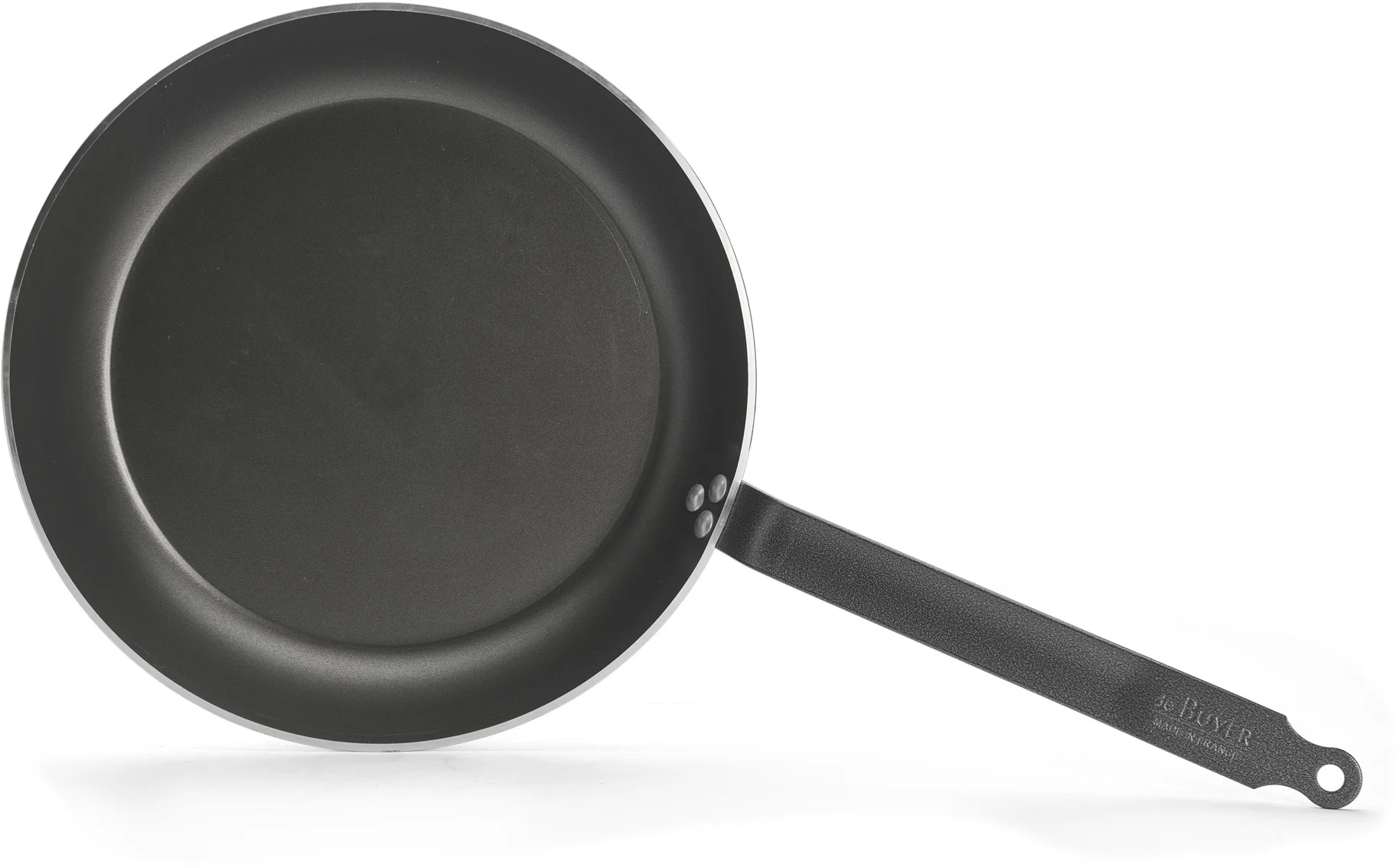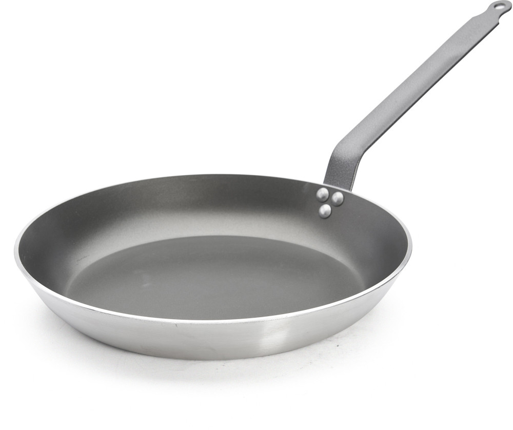 Stalowy nitowany uchwyt we francuskim stylu pokryty żywicą epoksydową jest niezwykle odporny na wysokie temperatury, dzięki czemu patelnia wraz z potrawą może być zapiekana w piekarniku.