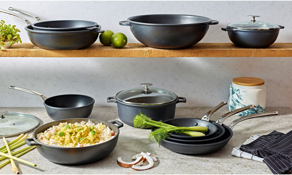 Garnek wykonany jest z odlewanego pod ciśnieniem – ekstremalnie trwałego - aluminium. Grubość korpusu ok. 7 mm sprawia, że powłoka nieprzywierająca jest dobrze chroniona. Dzięki grubemu korpusowi naczynie doskonale radzi sobie z deformacją, uderzeniami i nagłymi zmianami temperatury. Najwyższej jakości powłoka PTFE (politetrafluoroetylen) nanoszona jest bezpośrednio na odlewanym aluminium, co sprawia, że jest bardziej odporna niż w przypadku powłoki nakładanej warstwowo. Jej wyjątkowa odporność na ścieranie sprawia, że naczynie zachowuje swoje właściwości non-stick aż o 50% dłużej niż inne patelnie tego typu, co czyni ją ekonomicznym wyborem. Powłoka non-stick nie zawiera szkodliwych dla zdrowia związków chemicznych PFOS (kwas perfluorooktanosulfonowy) oraz PFOA (kwas perfluorooktanowy), i pokrywa zarówno wewnętrzną, jak i zewnętrzną stronę garnka. Dzięki wysokiej jakości powłoce nieprzywierającej możesz przygotowywać zdrowe dania z minimalną ilością tłuszczu.