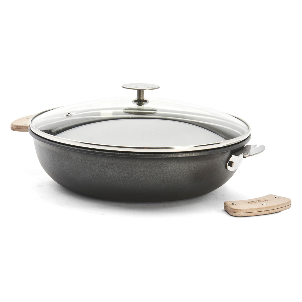 CHOC EXTREME LOQY to kolekcja naczyń z nowatorskim i użytecznym systemem mocowań uchwytów. Uchwyty są solidnie nitowane, zapewniające wieloletnią trwałość i komfort użytkowania. Naczynie może być używane ze zdejmowaną rączką D-3660-00, lub z parą uchwytów D-3660-02 z drewna bukowego - do kupienia osobno. Naczynia tej serii można łatwo układać w stosy, co daje możliwość wygodnego przechowywania i oszczędności miejsca. Naczynia nadają się do wszystkich rodzajów płyt grzewczych, w tym indukcyjnych. Po zdemontowaniu rączki (lub drewnianych uchwytów) patelnie mogą być stosowane również do zapiekania lub wykończania dań w piekarniku w temperaturze do 250°C.