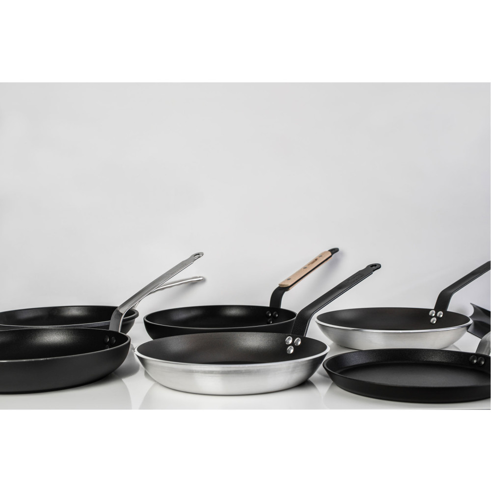 Patelnia CHOC marki deBuyer wykonana jest z trwałego aluminium. Grubość korpusu patelni 3,3-5 mm sprawia, że powłoka nieprzywierająca jest dobrze chroniona. Wysokiej jakości pięciowarstwowa powłoka PTFE (politetrafluoroetylen), utrzymuje doskonałe właściwości nieprzywierania przez długi czas. Dzięki temu możesz gotować jakościowe dania, używając mniej tłuszczu, co przyczynia się do utrzymania zdrowego stylu życia. Długa użyteczność patelni czyni ją również bardziej ekonomiczną. Powłoka non-stick nie zawiera szkodliwych dla zdrowia związków PFOS (kwas perfluorooktanosulfonowy) oraz PFOA (kwas perfluorooktanowy. Dodatkowo wzmocniony spód patelni sprawia, że temperatura rozprowadza się równomiernie.
