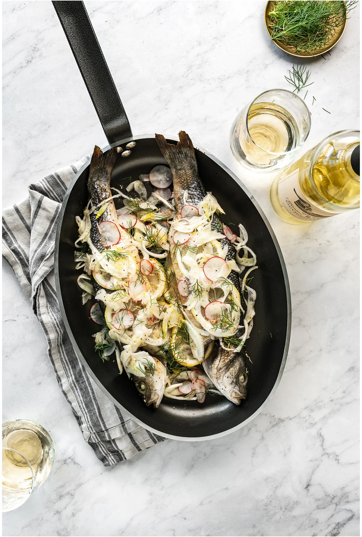 Patelnia CHOC nadaje się do wszystkich źródeł ciepła, z wyjątkiem kuchenek indukcyjnych. Co więcej, można jej używać w piekarniku przez 10 minut w temperaturze maks. 200°C, co daje jeszcze więcej możliwości kulinarnych. Idealna do delikatnego smażenia całych ryb.