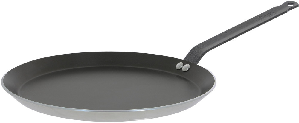 Patelnia do naleśników CHOC RESTO INDUCTION marki deBuyer wykonana jest z trwałego aluminium (4-5 mm). Grubość korpusu patelni 4-5 mm sprawia, że powłoka nieprzywierająca jest dobrze chroniona. Wysokiej jakości pięciowarstwowa powłoka PTFE (politetrafluoroetylen), utrzymuje doskonałe właściwości nieprzywierania przez bardzo długi czas. Dzięki temu możesz gotować jakościowe dania, używając mniej tłuszczu, co przyczynia się do utrzymania zdrowego stylu życia. Długa użyteczność patelni czyni ją również bardziej ekonomiczną. Powłoka non-stick nie zawiera szkodliwych dla zdrowia związków PFOS (kwas perfluorooktanosulfonowy) oraz PFOA (kwas perfluorooktanowy). Spód patelni wykonany został ze stali nierdzewnej AISI430, co umożliwia użytkowanie jej na płytach indukcyjnych.