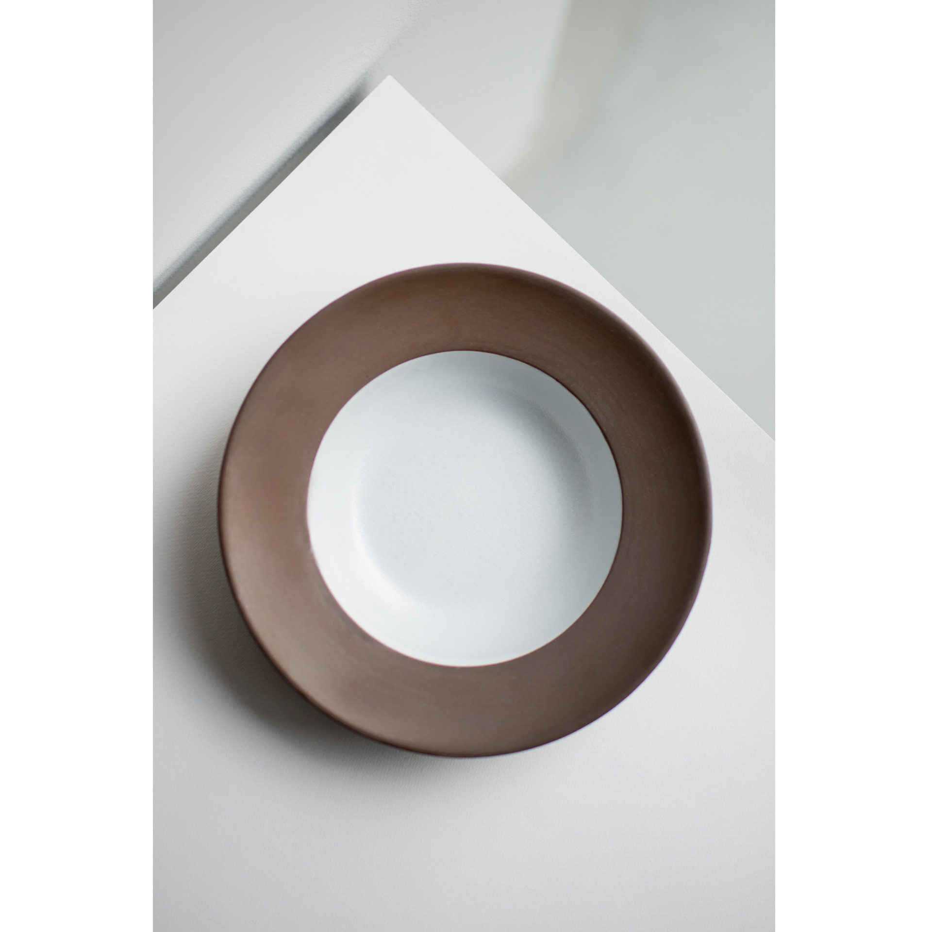 Kolekcja porcelany CHOCO marki Verlo to wyjątkowe połączenie pięknego szafirowego błękitu i delikatnej waniliowej bieli, które harmonizują z matowym, czekoladowym brązem zewnętrznej części naczyń. Mocno zarysowany, płaski rant naczyń w tym samym kolorze brązu wspaniale podkreśla wewnętrzne barwy kolekcji.