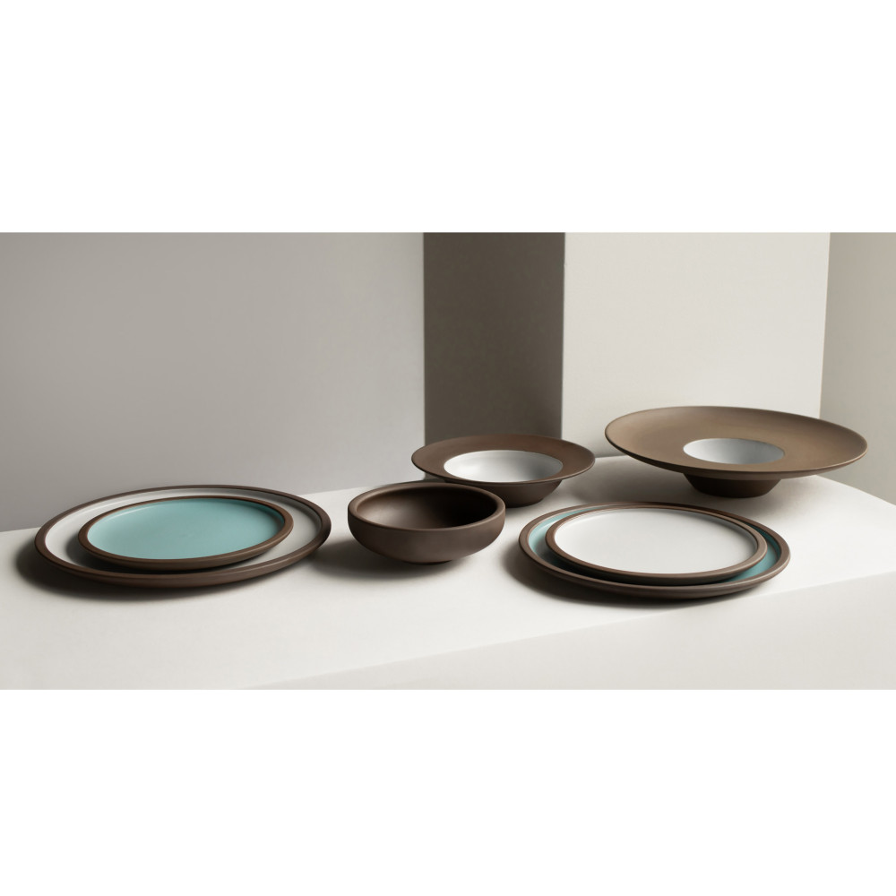 Kolekcja porcelany CHOCO marki Verlo to wyjątkowe połączenie pięknego szafirowego błękitu i delikatnej waniliowej bieli, które harmonizują z matowym, czekoladowym brązem zewnętrznej części naczyń. Mocno zarysowany, płaski rant naczyń w tym samym kolorze brązu wspaniale podkreśla wewnętrzne barwy kolekcji.