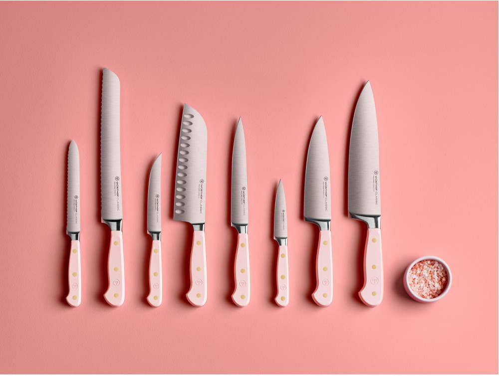 CLASSIC COLOR marki WÜSTHOF to kolekcja odnosząca się do skojarzeń pochodzących ze świata kulinarnego, zainspirowana oddziaływaniem kolorów na nasze emocje. Choć doświadczanie kolorów jest w dużej mierze subiektywne, oczywiste jest że mogą one wpływać na szeroki wachlarz naszych nastrojów, uczuć czy wspomnień. Kolor może być magnetyczny i inspirujący, i to jest powód, dla którego WÜSTHOF z radością i dumą rozszerza serię noży Classic. Pięć pięknych odcieni z pewnością wywoła dobre skojarzenia i dodadzą subtelnego akcentu kolorystycznego do Twojego kulinarnego życia. Poznaj inspirujące kolory: AKSAMITNA OSTRYGA, FIOLETOWY YAM, KORALOWA BRZOSKWINIA, RÓŻOWA SÓL HIMALAJSKA, AROMATYCZNY SUMAK i ciesz się chwilami pełnymi energetyzującej energii.