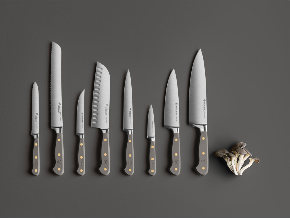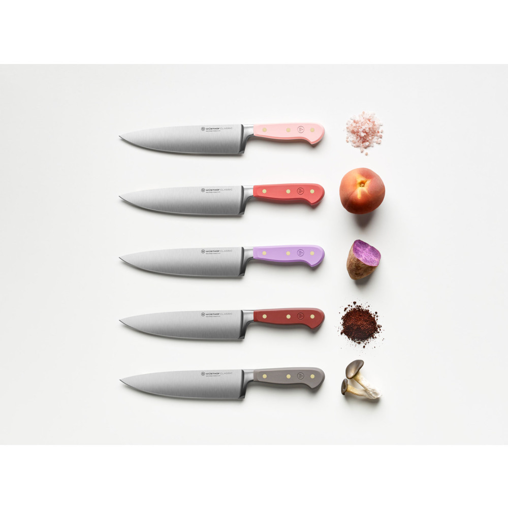 CLASSIC COLOR marki WÜSTHOF to kolekcja odnosząca się do skojarzeń pochodzących ze świata kulinarnego, zainspirowana oddziaływaniem kolorów na nasze emocje. Choć doświadczanie kolorów jest w dużej mierze subiektywne, oczywiste jest że mogą one wpływać na szeroki wachlarz naszych nastrojów, uczuć czy wspomnień. Kolor może być magnetyczny i inspirujący, i to jest powód, dla którego WÜSTHOF z radością i dumą rozszerza serię noży Classic. Pięć pięknych odcieni z pewnością wywoła dobre skojarzenia i dodadzą subtelnego akcentu kolorystycznego do Twojego kulinarnego życia. Poznaj inspirujące kolory: AKSAMITNA OSTRYGA, FIOLETOWY YAM, KORALOWA BRZOSKWINIA, RÓŻOWA SÓL HIMALAJSKA, AROMATYCZNY SUMAK i ciesz się chwilami pełnymi energetyzującej energii.