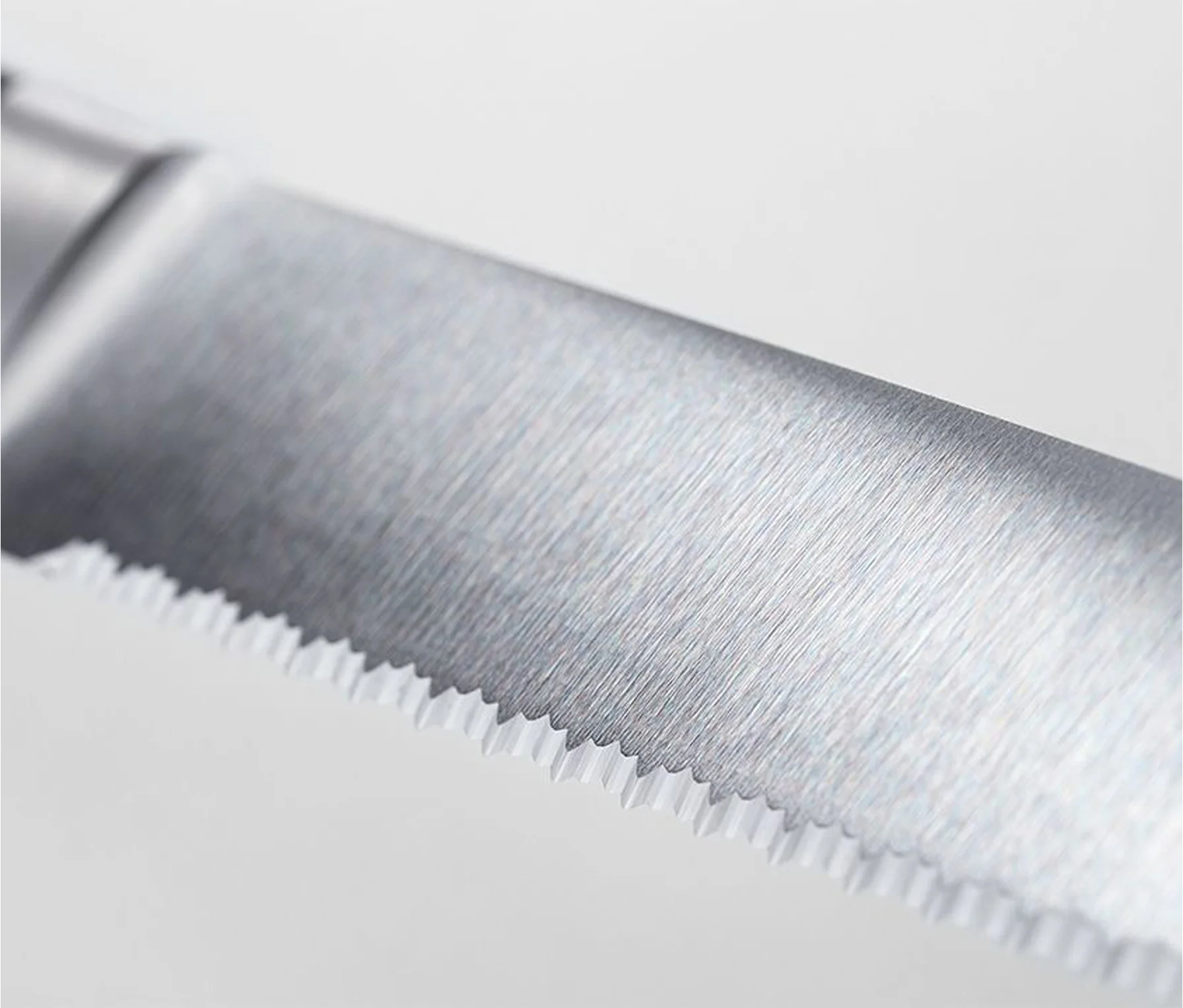 Precyzyjna, podwójnie ząbkowana krawędź noża do chleba WÜSTHOF sprawia znaczną różnicę w stosunku do standardowego noża do chleba: w przeciwieństwie do jednokrotnie ząbkowanej krawędzi, ten nóż posiada podwójne ząbki, co oznacza, że pozostaje ostry dłużej, wymaga mniejszego nacisku i nadaje się do bardzo precyzyjnych cięć. Chleb o twardej skórce nie jest miażdżony podczas krojenia, natomiast chleb o miękkiej skórce jest również precyzyjnie krojony, bez rozrywania delikatnej powierzchni pieczywa.