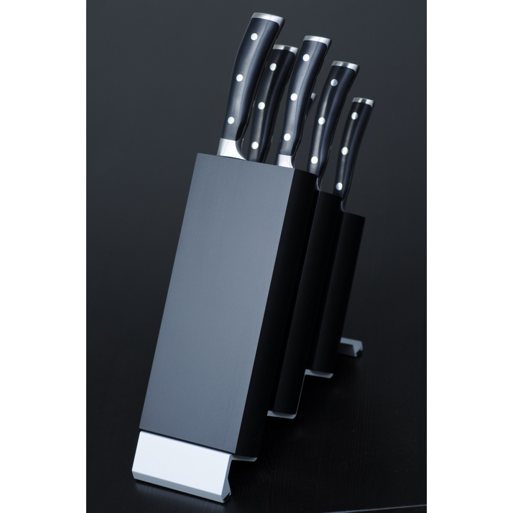 Procedura ta sprawia, że każdy nóż jest zbalansowany, a ergonomicznie ukształtowana rękojeść zapewnia pewny chwyt. Syntetyczny materiał rękojeści jest trwały, łatwy w utrzymaniu w czystości, doskonały do codziennego użytkowania.