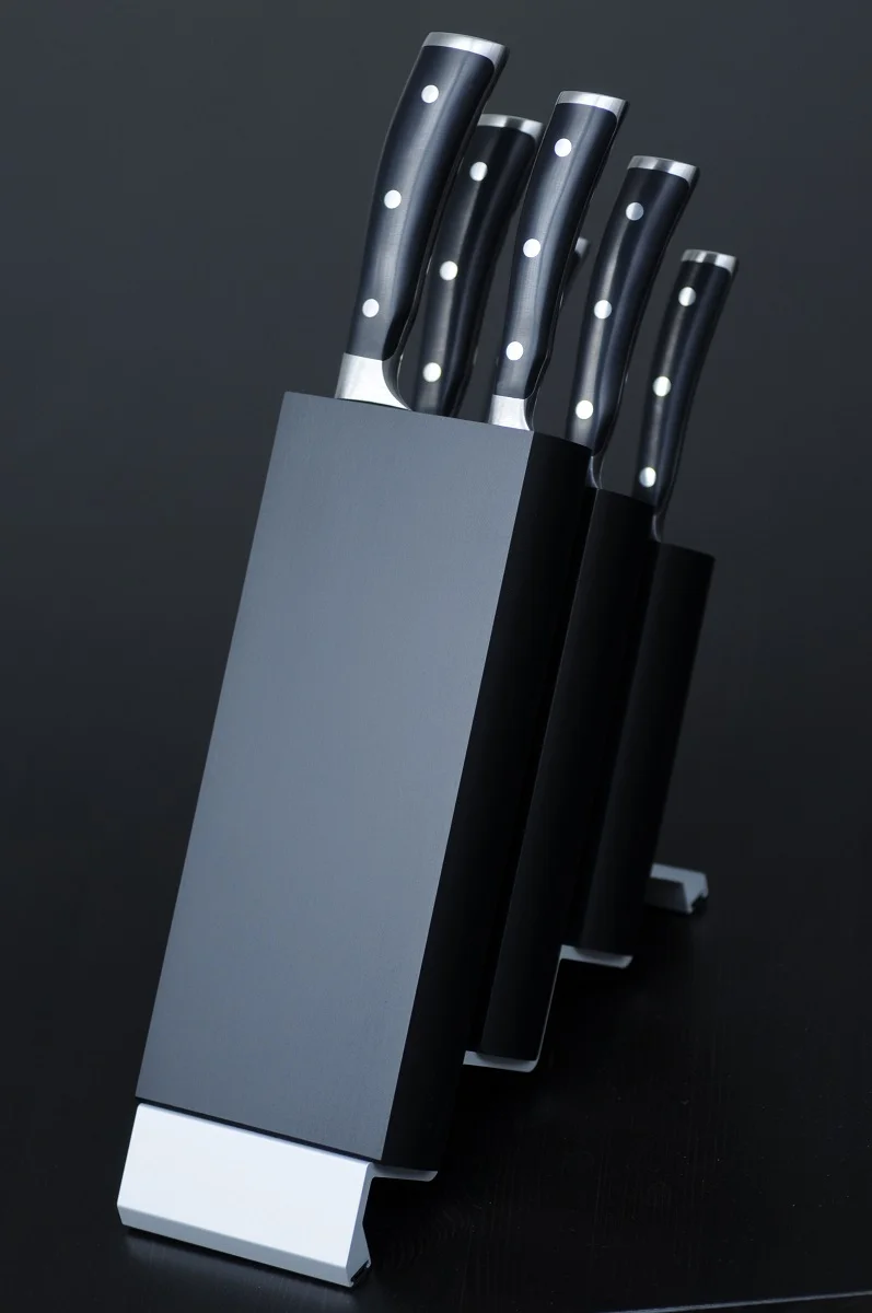 Procedura ta sprawia, że każdy nóż jest zbalansowany, a ergonomicznie ukształtowana rękojeść zapewnia pewny chwyt. Syntetyczny materiał rękojeści jest trwały, łatwy w utrzymaniu w czystości, doskonały do codziennego użytkowania.