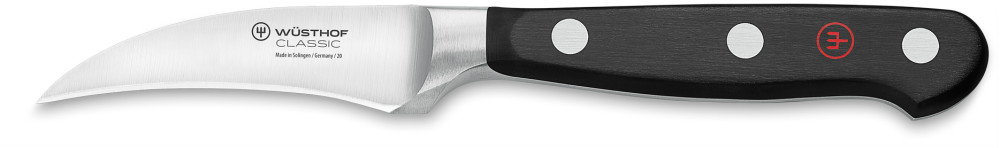 Ten mały, poręczny nóż o krótkim zakrzywionym ostrzu świetnie nadaje się do obierania i oczyszczania okrągłych owoców i warzyw. Dzięki charakterystycznemu kształtowi, łatwo np. obiera ziemniaki czy jabłka pozostawiając cienkie skórki. Również można go używać do precyzyjnego krojenia owoców i warzyw w bardzo małe kawałeczki.