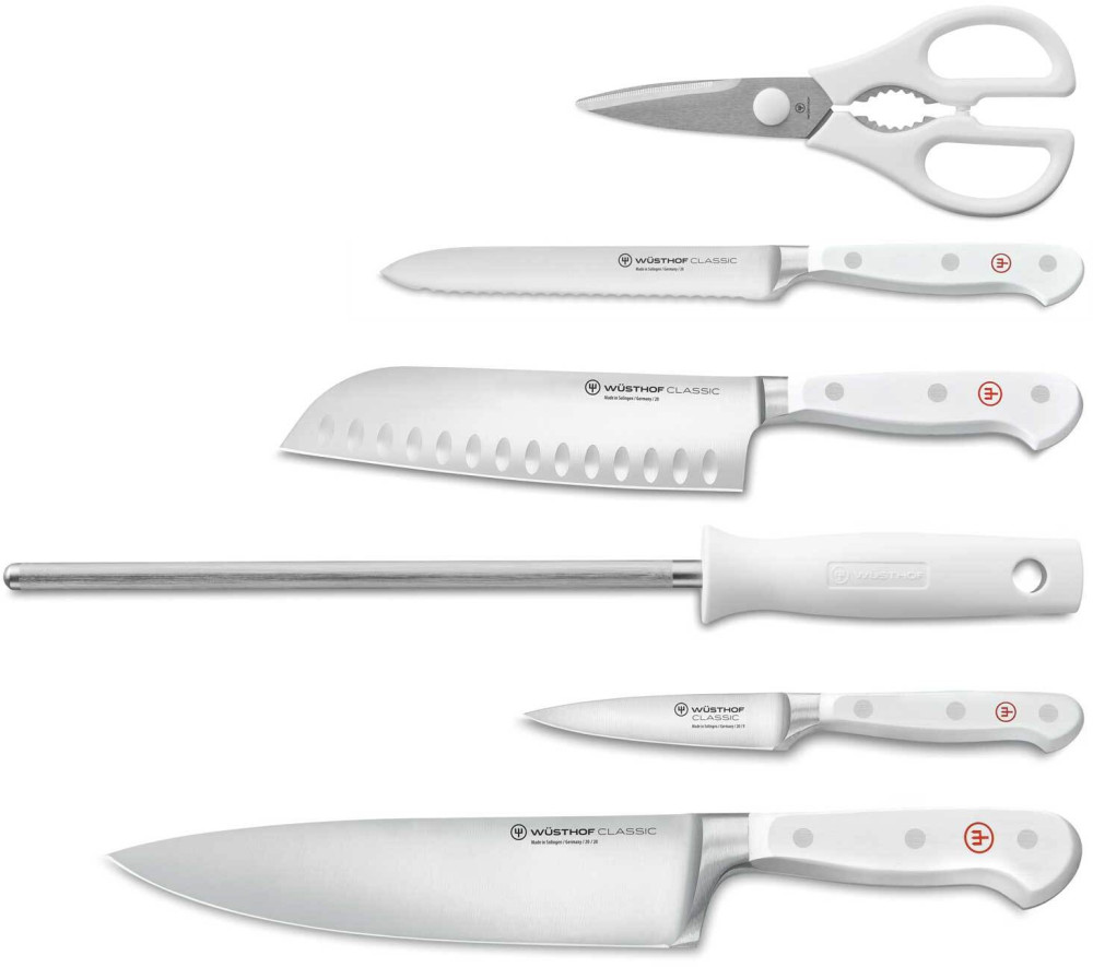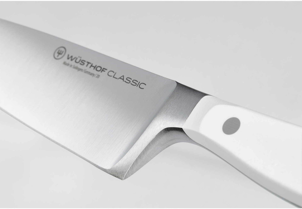 Linia CLASSIC marki WÜSTHOF to noże, kóre od 30 lat towarzyszą miłośnikom gotowania i profesjonalnym kucharzom. Dzięki wyrafinowanej prostocie i elegancji mają wszystko czego potrzebujesz do przygotowania posiłku. Linia CLASSIC WHITE to nowa interpretacja linii CLASSIC wzbogaconej o białe uchwyty. Noże są idealnie wyważone, ergonomiczne, wygodne w użytkowaniu.