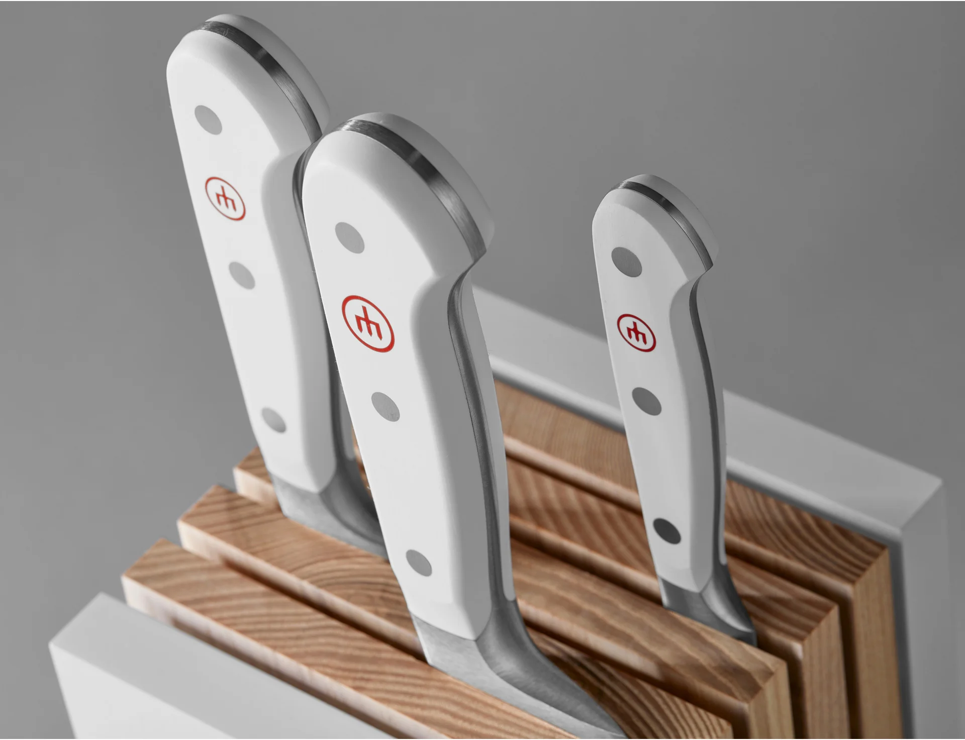 Linia CLASSIC marki WÜSTHOF to noże, kóre od 30 lat towarzyszą miłośnikom gotowania i profesjonalnym kucharzom. Dzięki wyrafinowanej prostocie i elegancji mają wszystko czego potrzebujesz do przygotowania posiłku. Linia CLASSIC WHITE to nowa interpretacja linii CLASSIC wzbogaconej o białe uchwyty. Noże są idealnie wyważone, ergonomiczne, wygodne w użytkowaniu.