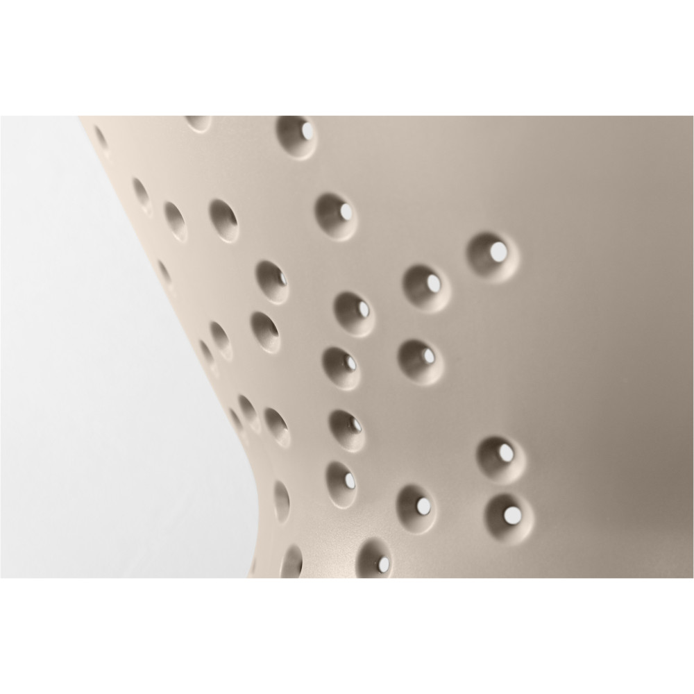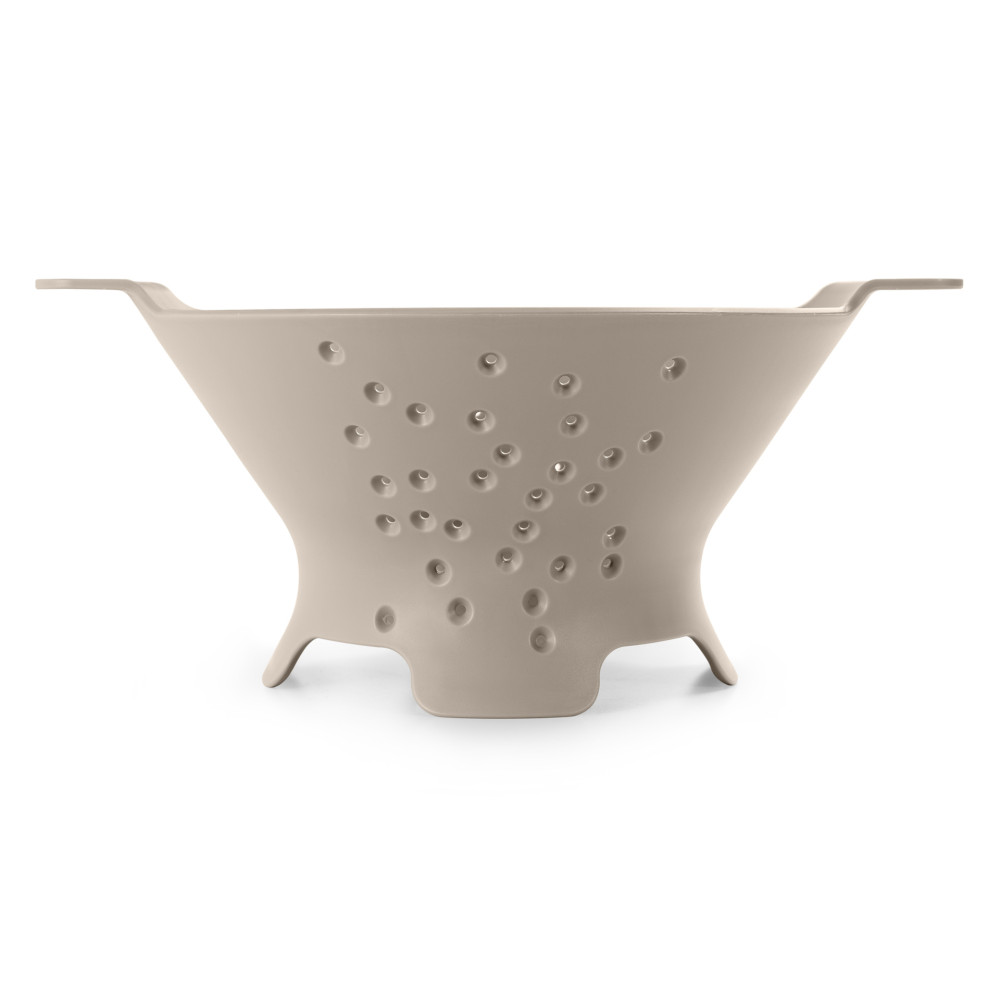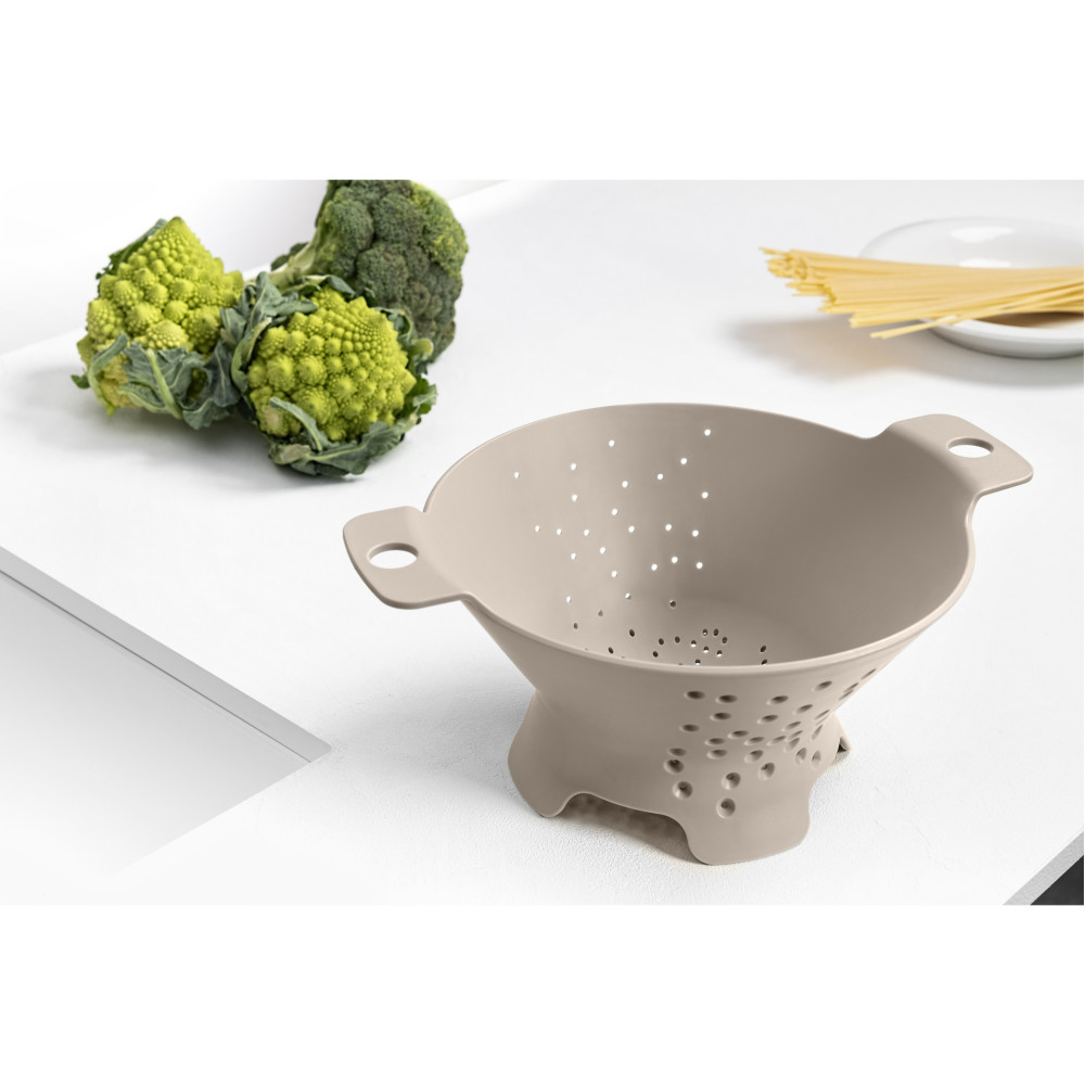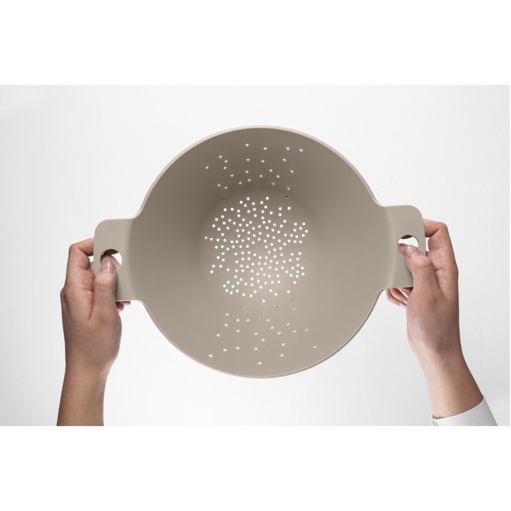 Durszlak COSMO Blim Plus został zaprojektowany z uwzględnieniem nietypowego rozmieszczenia otworów, które pozwalają w najlepszy możliwy sposób odsączyć makaron. Średnica otworów jest mniejsza od wewnątrz a szersza po zewnętrznej stronie durszlaka. Dzięki temu odsączana woda nie bryzga na boki, a co najważniejsze, spaghetti nie wydostaje się przez otwory na zewnątrz durszlaka . Jest pojemny i posiada stabilną podstawę z czterema podpierającymi nóżkami . Brak wewnętrznych otworów po stronach z uchwytami chroni dłonie przed wodą lub parą, a wygodne trzony z otworami na palec pozwalają sprawnie i bezpiecznie go przenieś.
