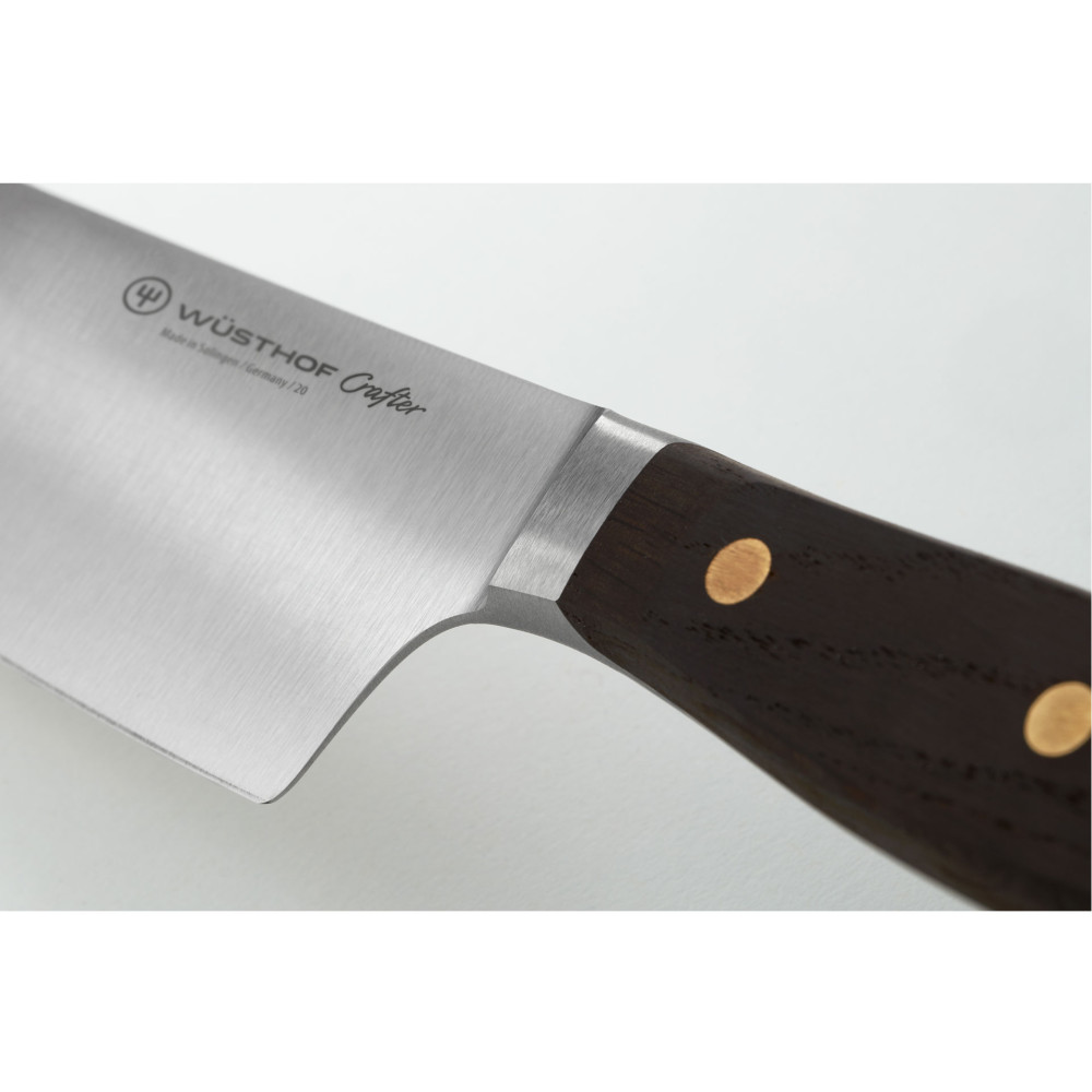 Linia CRAFTER to przykład bezkompromisowego podejścia do sztuki tworzenia noży, stojącego w świadomej opozycji do masowej produkcji narzędzi niskiej jakości, których żywot jest bardzo krótki. Staranny dobór surowców dębu, mosiądzu i wysokiej jakości stali nierdzewnej połączonych wiedzą, doświadczeniem, sztuką doskonaloną od ponad 200 lat jest gwarancją stworzenia noża o znakomitych właściwościach użytkowych oraz szlachetnym wyglądzie.