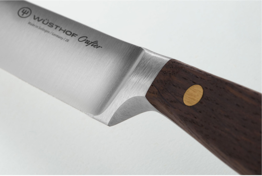 Linia CRAFTER to przykład bezkompromisowego podejścia do sztuki tworzenia noży, stojącego w świadomej opozycji do masowej produkcji narzędzi niskiej jakości, których żywot jest bardzo krótki. Staranny dobór surowców dębu, mosiądzu i wysokiej jakości stali nierdzewnej połączonych wiedzą, doświadczeniem, sztuką doskonaloną od ponad 200 lat jest gwarancją stworzenia noża o znakomitych właściwościach użytkowych oraz szlachetnym wyglądzie.
