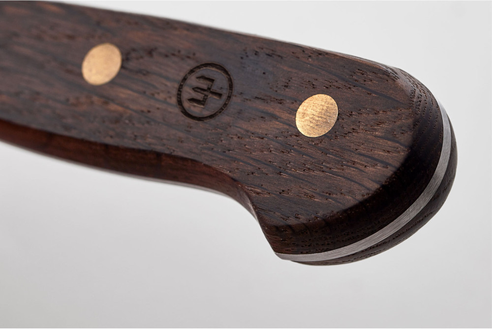 Linia CRAFTER to przykład bezkompromisowego podejścia do sztuki tworzenia noży, stojącego w świadomej opozycji do masowej produkcji narzędzi niskiej jakości, których żywot jest bardzo krótki. Staranny dobór surowców dębu, mosiądzu i wysokiej jakości stali nierdzewnej połączonych wiedzą, doświadczeniem, sztuką doskonaloną od ponad 200 lat jest gwarancją stworzenia noża o znakomitych właściwościach użytkowych oraz szlachetnym wyglądzie.