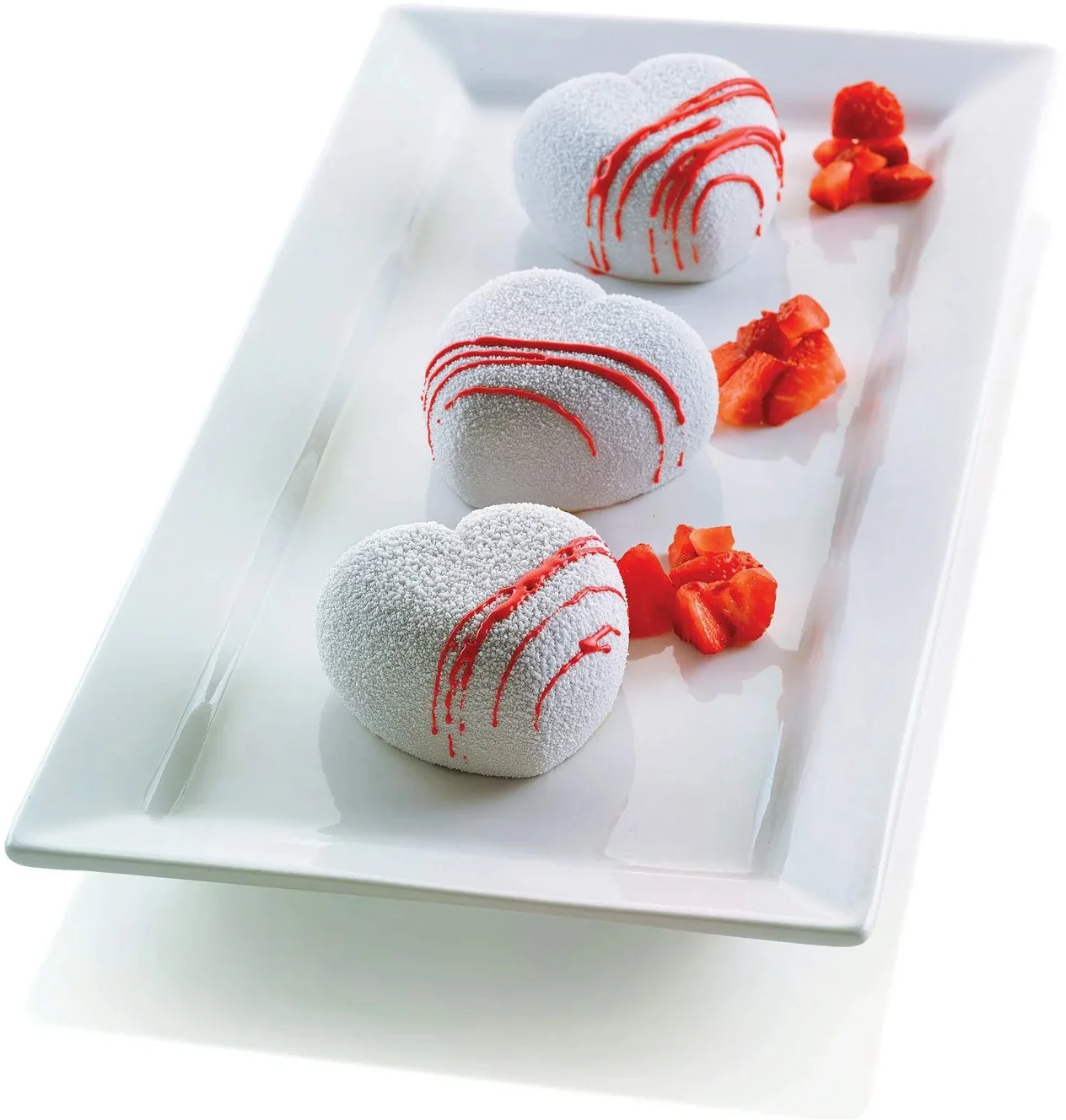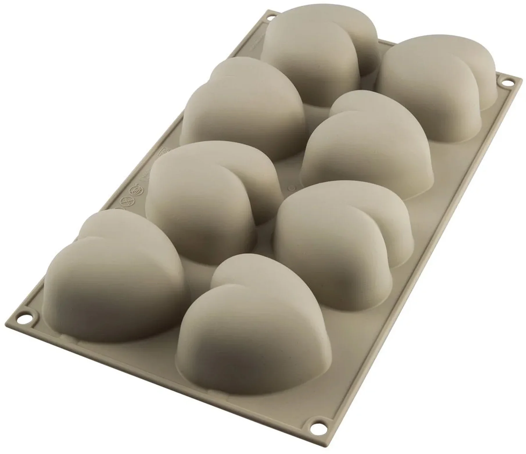Forma Cuoricino z linii 3Design firmy Silikomart gwarantuje doskonałe rezultaty nie tylko w wersji semifreddo i mousse, ale także w wersji do wypiekania. Innowacyjna technologia 3D marki Silikomart sprawia, że wyjmowanie deserów z formy jest szybkie i łatwe, co pozwala osiągnąć perfekcyjne efekty. Może być wykorzystywana do przygotowywania różnych rodzajów deserów, w tym ciast i wielu innych. Forma o kształcie serc daje zaskakujący i oryginalny efekt w tworzeniu kreatywnych deserów. Forma silikonowa - Cuoricino posiada 8 zagłębień, każde o pojemności 96ml.