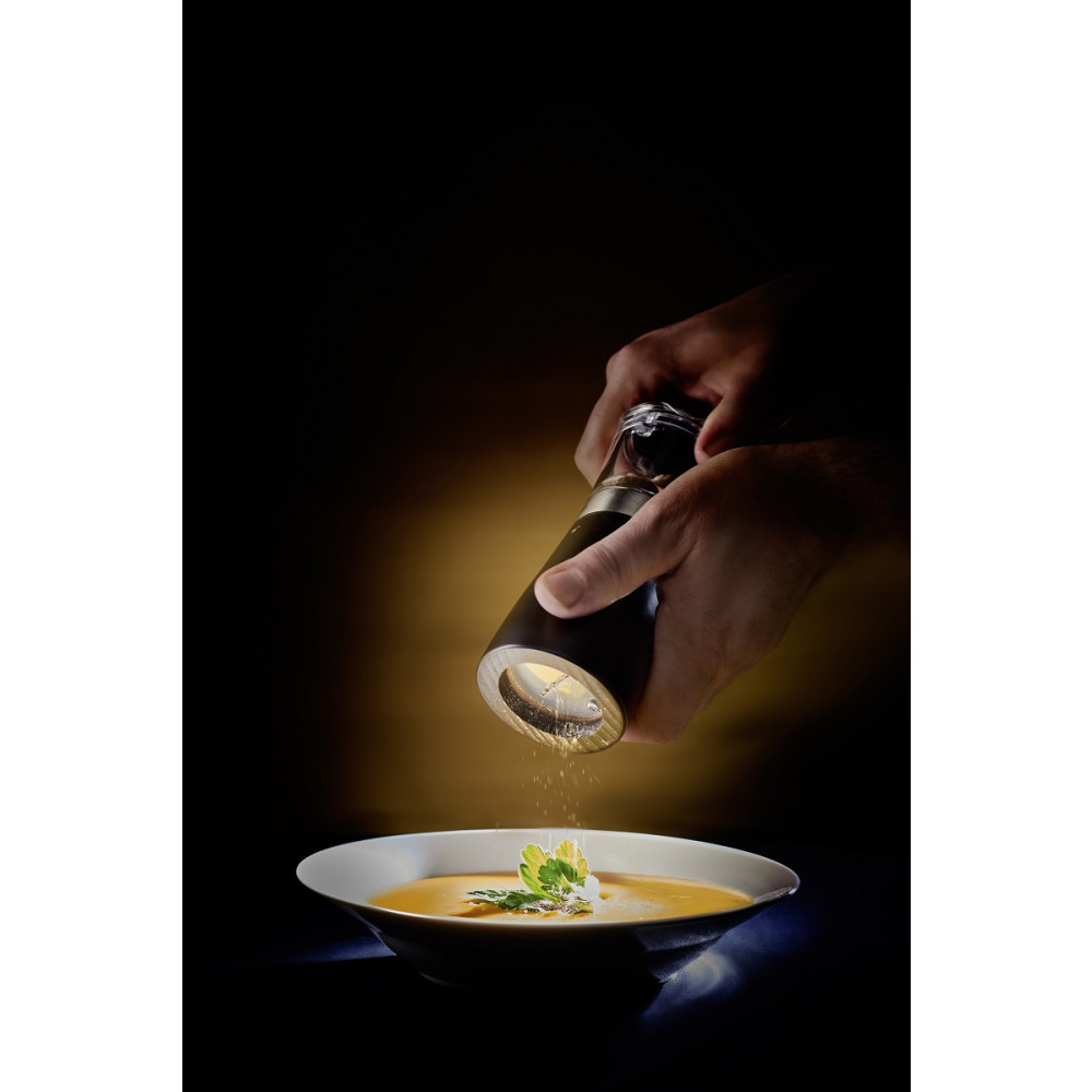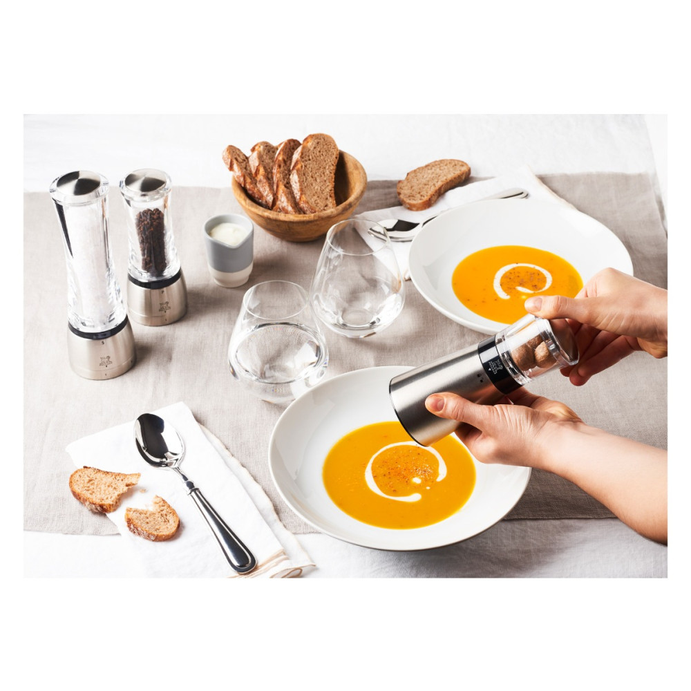 Akrylowy, przezroczysty pojemnik jest istotnym elementem dekoracyjnym i z łatwością pomieści 3 gałki muszkatołowe. Ultranowoczesny design młynka podkreśli aranżację stołu, zwłaszcza jeśli połączysz go z młynkami do pieprzu i do soli z kolekcji DAMAN.