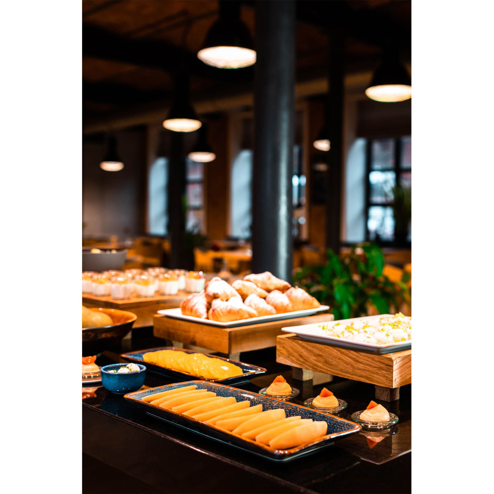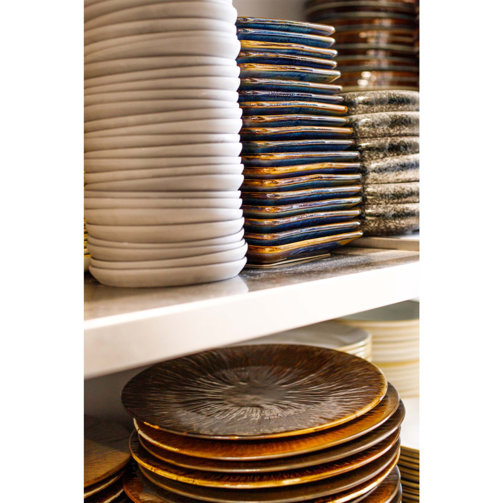Połączenie głębi koloru z efektami nakrapiania czy też jego przenikania, uzyskano podczas wypalania porcelany nowatorską metodą. To idealna baza do wyeksponowania dań. Wysoki połysk glazury dodatkowo pięknie uwydatnia kolor. Taki efekt, z pewnością doda wnętrzu pozytywnego, mocnego akcentu.