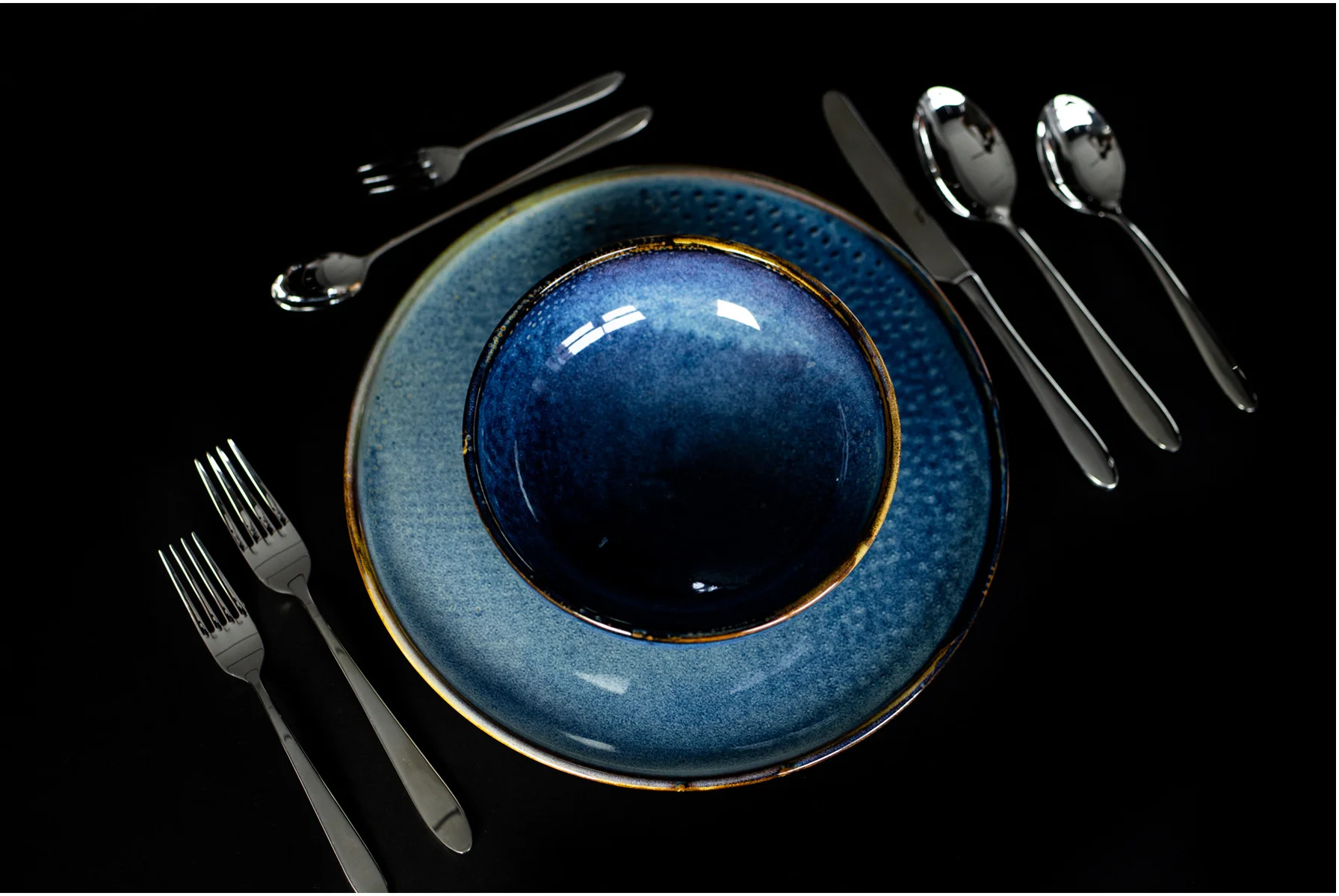 Polecamy również zmiksowanie kolekcji z linią WIKLE. Zmiksowanie mocnego kobaltowego koloru, z chłodną i łagodną szarością idealnie tonizuje wystrój Twojego stołu. W połączeniu ze sztućcami SU ANTIQUE dodatkowo podkreśli nowatorski sposób prezentacji zastawy stołowej.