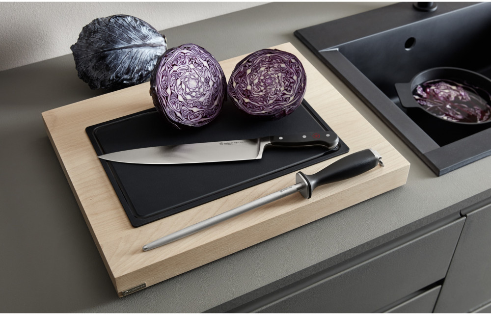 Drewno bukowe stosowane w produktach Wusthof jest drewnem poddanym tradycyjnej metodzie termo obróbki, dzięki czemu staje się ono praktycznie kompletnie odporne na działanie wody, bez stosowania żadnych powłok. Poddane działaniu temperatur 180 - 220 stopni, zmienia swoją strukturę wewnętrzną i zyskuje piękny ciemny, brązowy odcień. Staje się twardsze, trwalsze i nie przyjmujące wody. Nie kurczy się i nie zniekształca, jest również odporne na rozwijanie się grzybów, co jest częstym problemem niezabezpieczonego drewna przy dłuższym kontakcie z wilgocią.