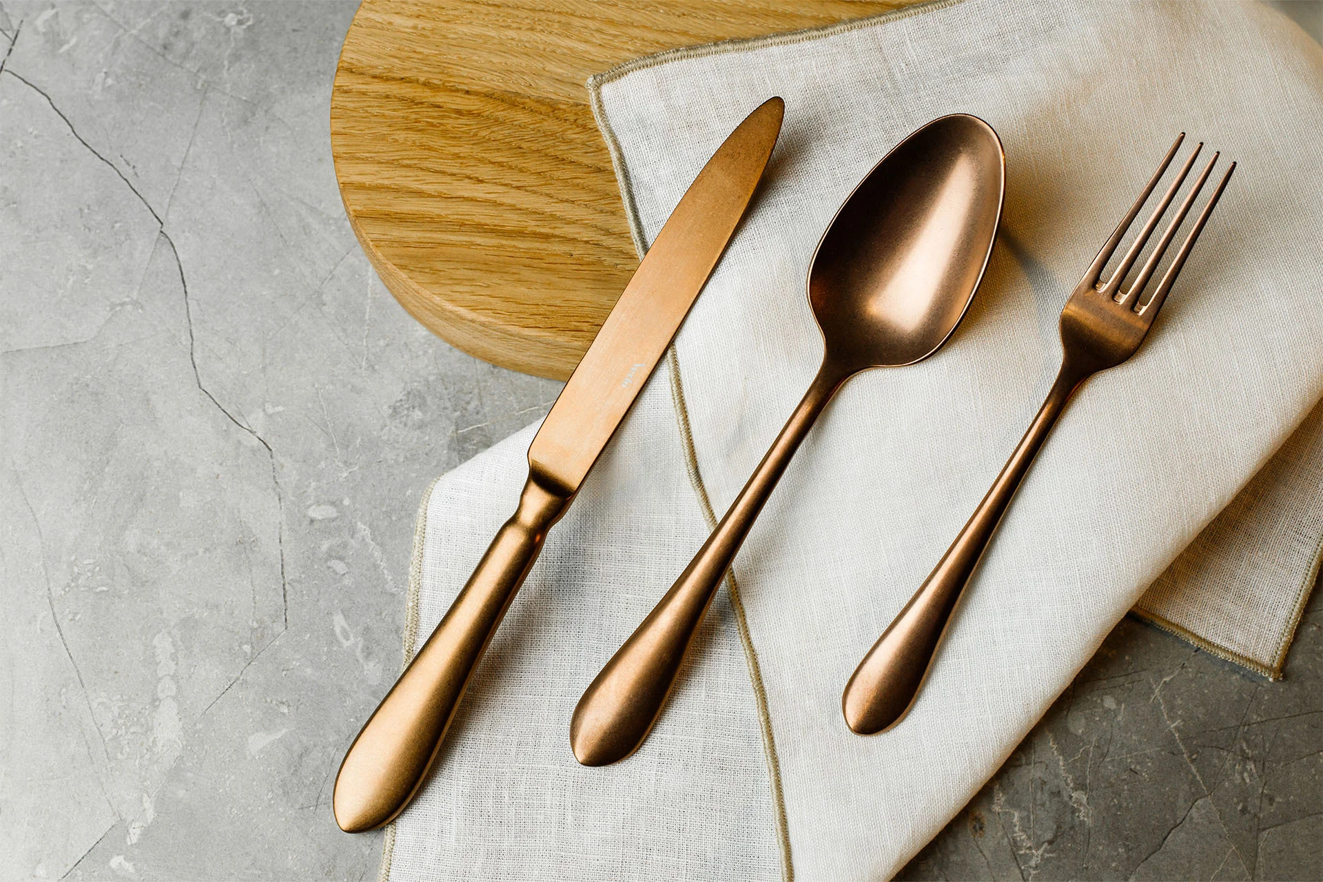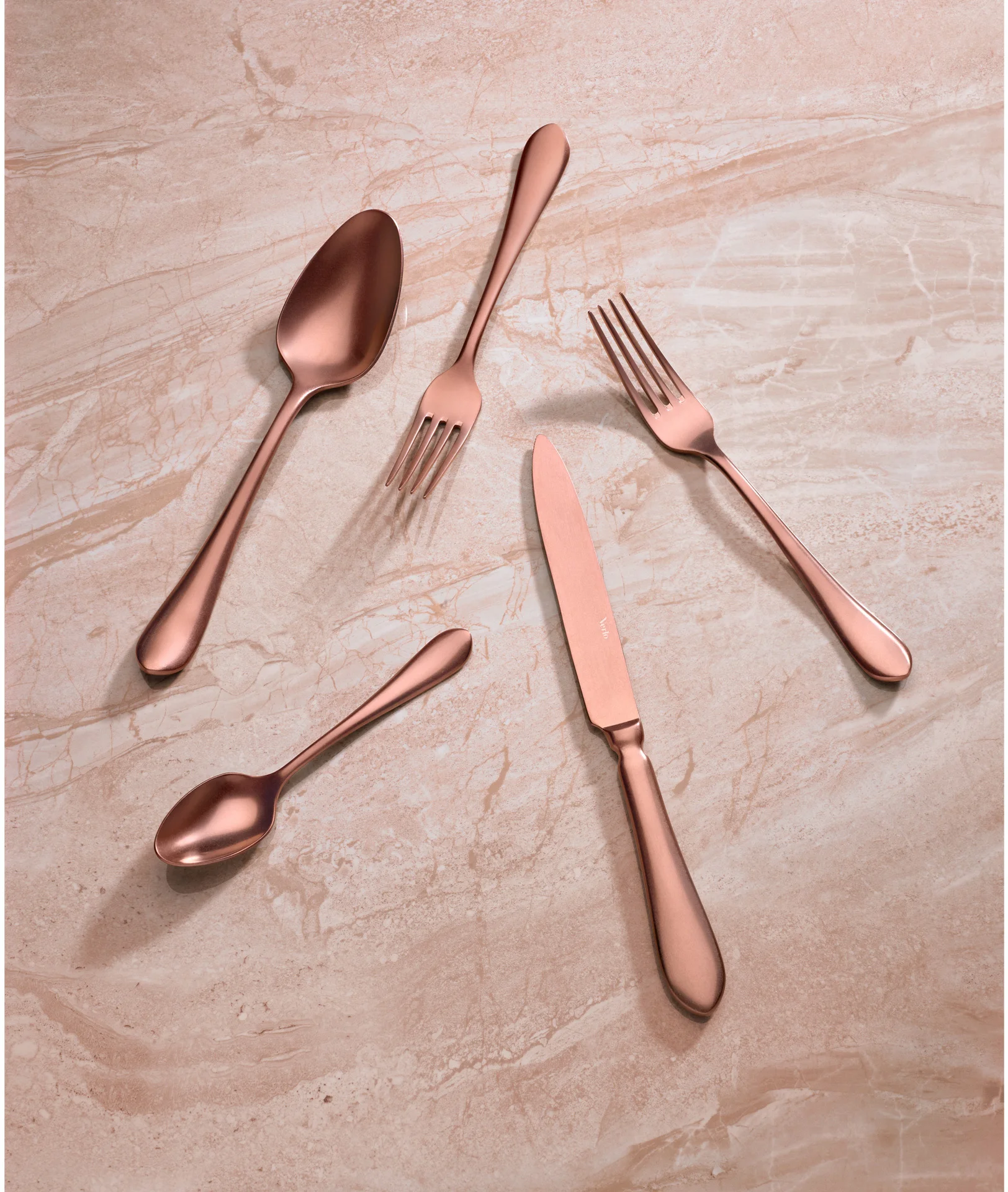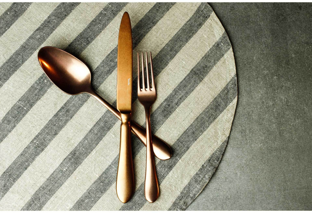 Kolekcja DESTELLO COPPER to odrobina modnego szaleństwa w nawiązaniu do jadalnianych kreacji w stylu francuskim. Opływowe, masywne rękojeści o eleganckiej linii podkreślają ten styl. Unikatowe żłobienie w górnej części uchwytu podbija efekty wizualne tej kolekcji. Szerokie łyżki subtelnie zwężające się ku górze, są nawiązaniem do tradycyjnego stylu. To również doskonały wybór do kuchni w stylu rustykalnym.
