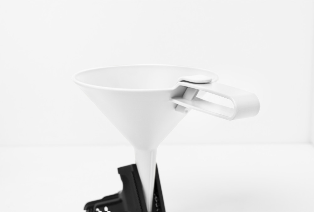 Lejek DOLINA został zaprojektowany tak, aby precyzyjnie dozować płynne substancje. Jednym ruchem palca możesz uruchomić szczelny korek, który skutecznie zatrzyma dalsze wylewanie się płynów. Idealnie nadaje się do przelewania, napełniania i dekorowania. Wygodny uchwyt zapewnia komfort podczas pracy.