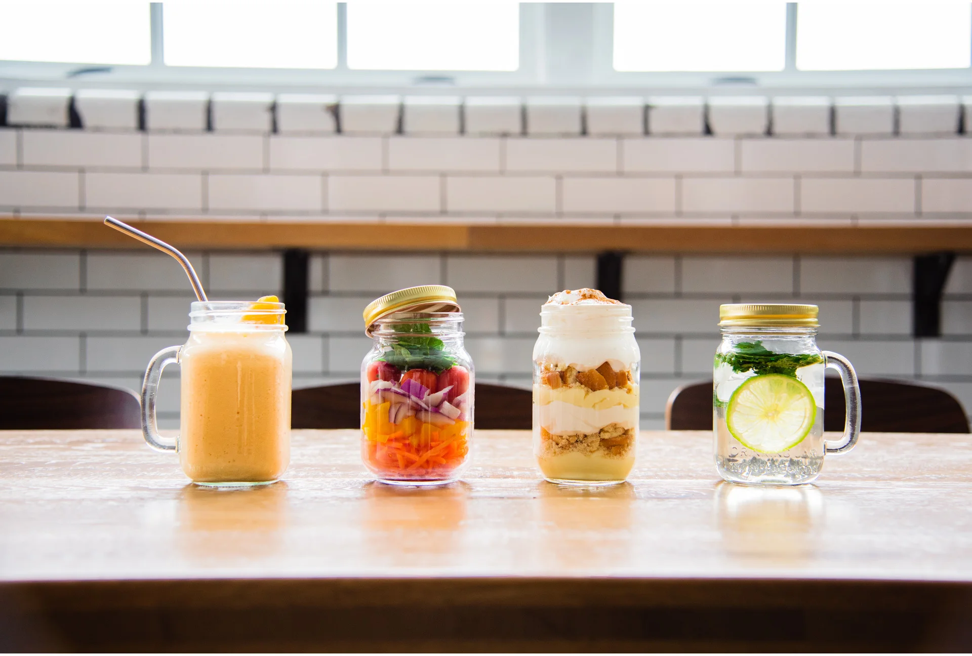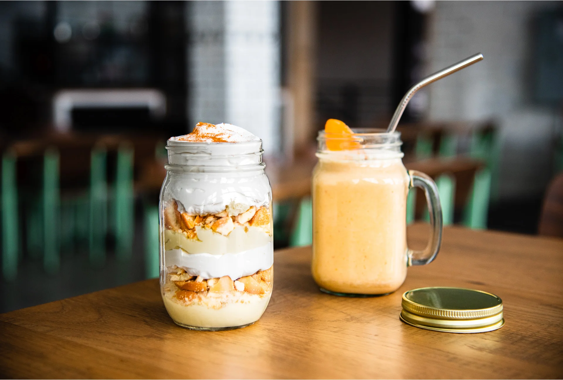 DRINKING JAR to stylowa szklanka w formie słoika, wyposażona w wygodny uchwyt, idealna do serwowania napojów i deserów. Doskonale sprawdzi się do podania lemoniady, mrożonej herbaty, koktajli, smoothie czy wody z owocami. Dzięki swojej pojemności i unikalnemu designowi świetnie nadaje się również do kreatywnych deserów, takich jak lodowe puchary, tiramisu czy warstwowe musy.