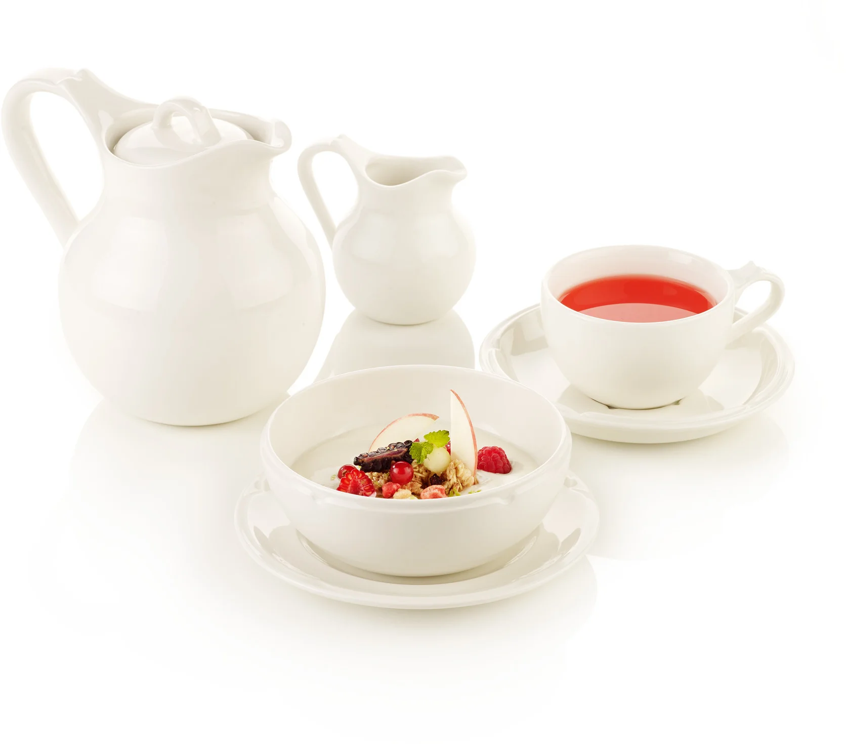 Klasyczna porcelana z linii ANNA zaprojektowana przez Mikaelę Dorfel przedstawia design "między wczoraj i dziś". Forma naczyń o łagodnych, subtelnych łukach, z delikatnym zdobieniem na krawędziach, to hołd dla tradycyjnej kuchni. Eleganckie talerze, półmiski i filiżanki sprawią, że każdy posiłek zyska ciepłą, "domową" oprawę.