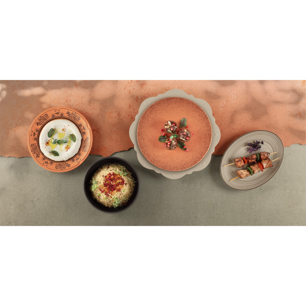 Kolekcja EARTH ARGILA marki RAK Porcelain to hołd dla natury, tradycji i głęboko zakorzenionych kultur. To co wyróżnia kolekcję EARTH ARGILA, to unikalna paleta kolorów, nawiązująca do korzeni dawnych tradycji garncarstwa. Dzięki specjalnemu procesowi szkliwienia, kolekcja przywodzi na myśl autentyczną terakotę i glinę, zachowując jednocześnie wyjątkową gładkość, nieporowatą powierzchnię i wytrzymałość mechaniczną porcelany. Każdy zdobiony produkt jest wyjątkowy, gdyż wzory są ręcznie nakładane na powierzchnię naczyń. Ewentualne drobne różnice we wzorach są dowodem na indywidualność każdego elementu (nie są uważane za wady produkcyjne).