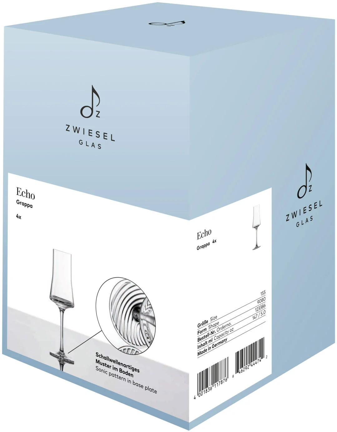 Kolekcja ECHO to pełna elegancji i wdzięku gra światła i formy. Falisty wzór w podstawach szklanek i kieliszków, harmonijnie mieni się i zachwyca grą światła i barw napoju. Złoto-miedziane kolory szkockich, irlandzkich single maltów czy wysokiej klasy japońskich whisky są doskonale uwydatnione przez charakterystyczne dno szklanki. Gruba podstawa szklanek zapewnia stabilność i dłużej utrzymuje napój we właściwej temperaturze. Kolekcja zachwyca również idealnym kształtem kieliszka, delikatną nóżką i charakterystycznym wzorem na jego podstawie. Kieliszki do grappy, martini, ginu czy szampana będą wyjątkowym akcentem podczas wyjątkowych chwil. Krystalicznie czyste szkło pięknie podkreśli niuanse koktajli, klasycznych long drinków czy ulubionych win.