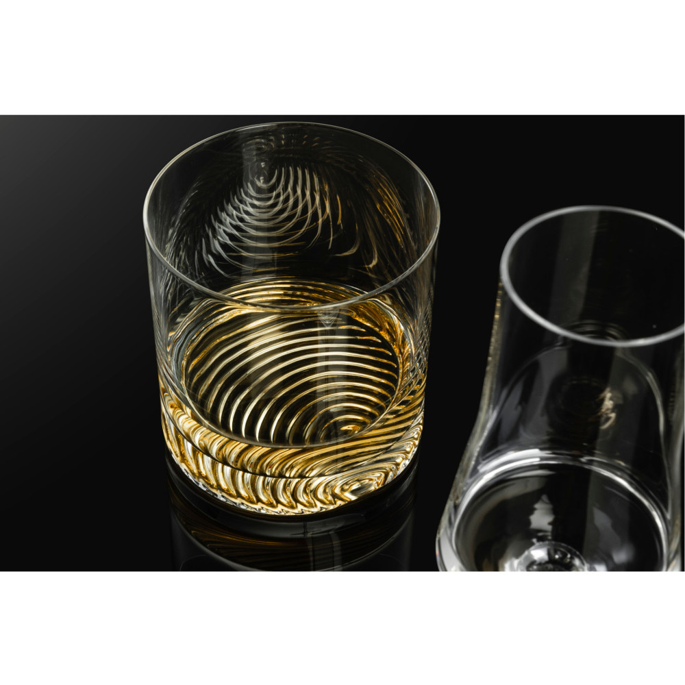 Kolekcja ECHO to pełna elegancji i wdzięku gra światła i formy. Falisty wzór w podstawach szklanek i kieliszków, harmonijnie mieni się i zachwyca grą światła i barw napoju. Złoto-miedziane kolory szkockich, irlandzkich single maltów czy wysokiej klasy japońskich whisky są doskonale uwydatnione przez charakterystyczne dno szklanki. Gruba podstawa szklanek zapewnia stabilność i dłużej utrzymuje napój we właściwej temperaturze. Kolekcja zachwyca również idealnym kształtem kieliszka, delikatną nóżką i charakterystycznym wzorem na jego podstawie. Kieliszki do grappy, martini, ginu czy szampana będą wyjątkowym akcentem podczas wyjątkowych chwil. Krystalicznie czyste szkło pięknie podkreśli niuanse koktajli, klasycznych long drinków czy ulubionych win.