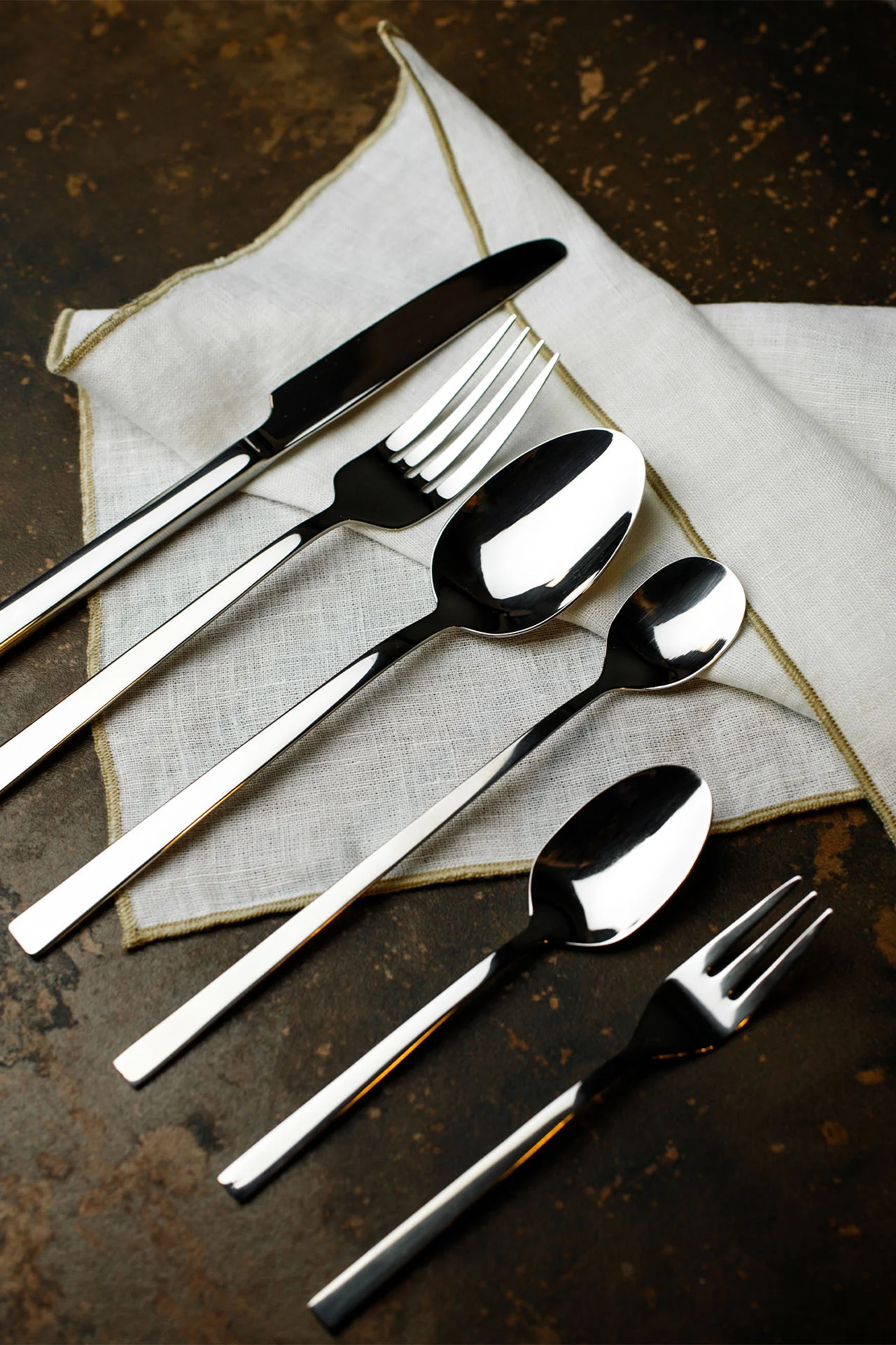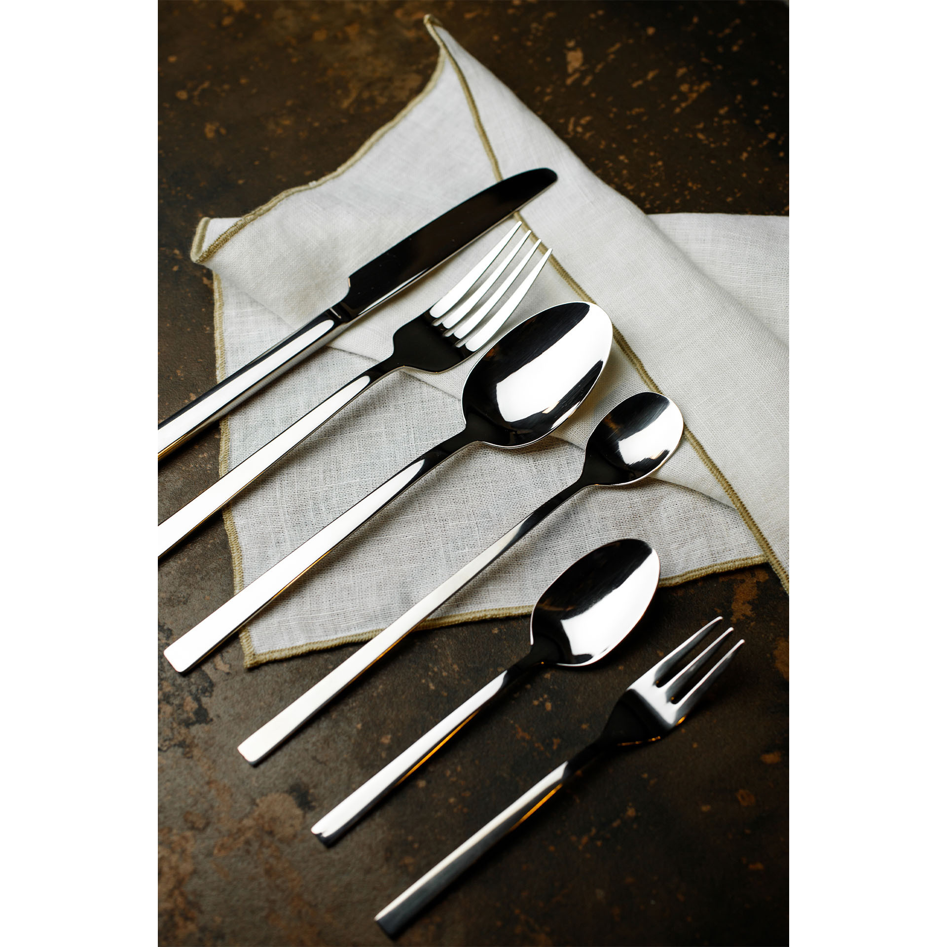 ELGADO. Proste krawędzie wykończeń sztućców, to charakterystyczny akcent tej kolekcji. Ciekawa, prosta linia połączenia ostrza noża z rękojeścią oraz szeroka powierzchnia noża nadaje tej kolekcji niezwykle ciekawego akcentu. Ze względu na uniwersalny design, sztućce doskonale komponują się z innymi akcesoriami zastawy stołowej.