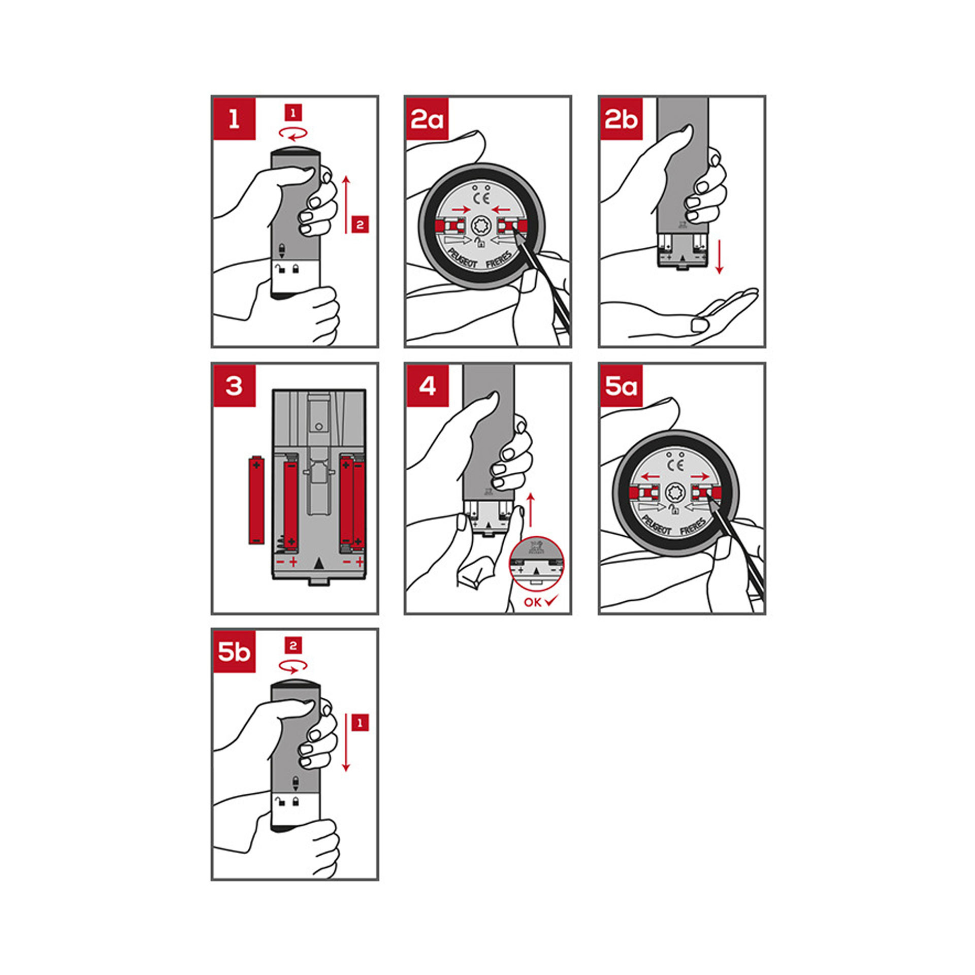 Ustawienie grubości mielenia w młynkach PEUGEOT może odbywać się bądź poprzez tradycyjną płynną regulację dzięki dokręceniu pokrętła w górnej części korpusu, bądź w przypadku młynków z mechanizmem uSelect, przez wybór jednego z 6 stopni grubości mielenia.